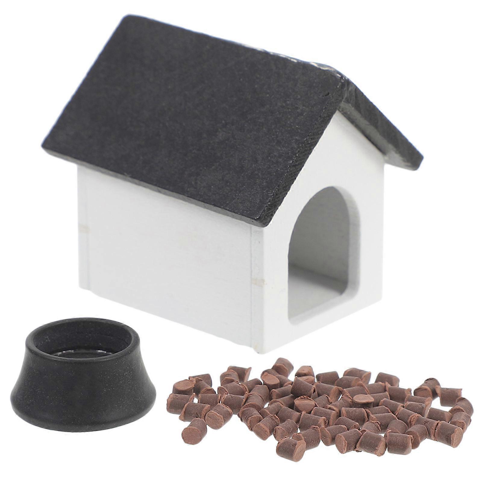 1 Set Miniature Black Kennel Furniture Set with Food Bowl Model for Dollhouse Decor, Ideal for Mini House Enthusiasts and Craft Lovers