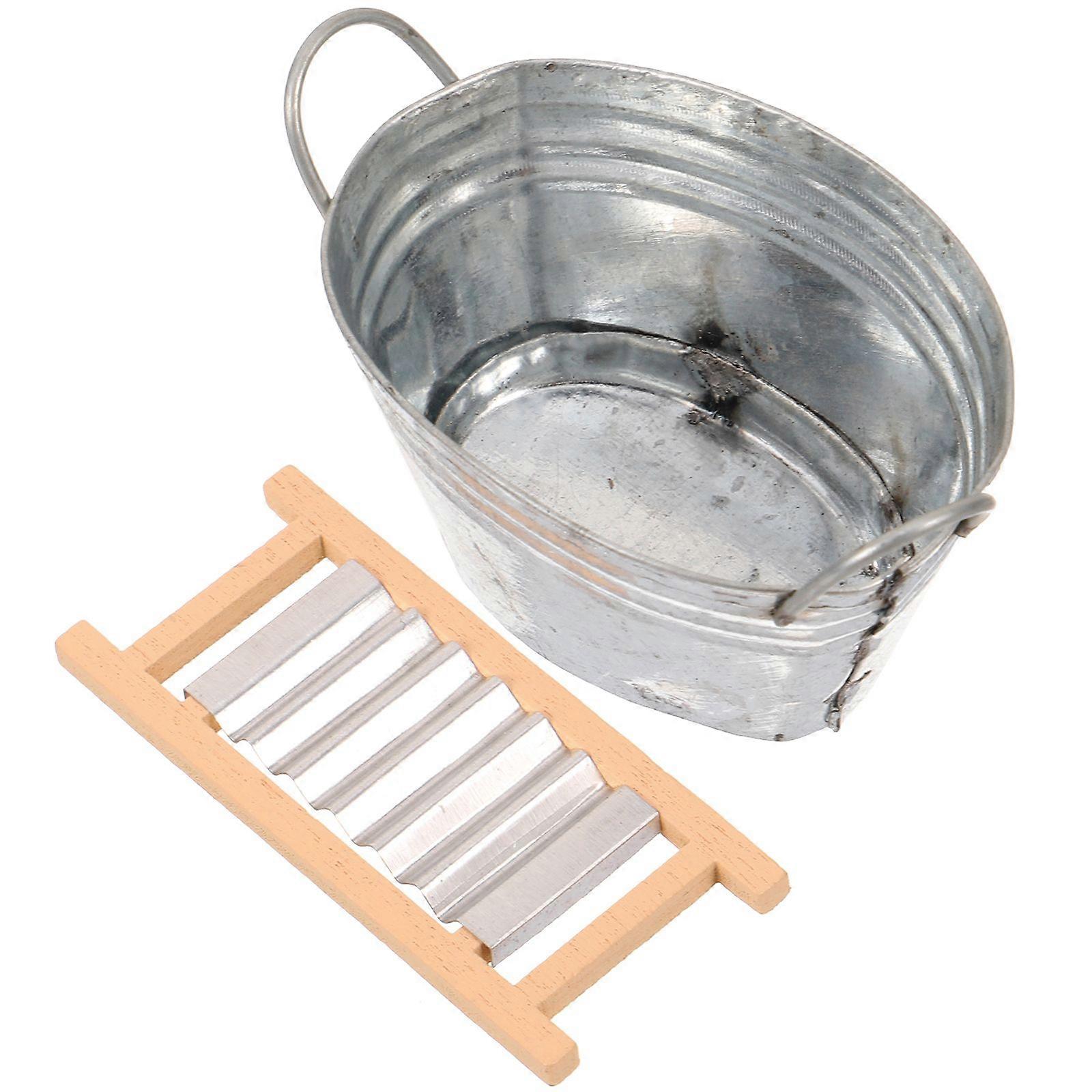 1 Set of Dollhouse Miniature Laundry Basin Wash Board Set Mini Washboard Wash Tub Dollhouse Furniture