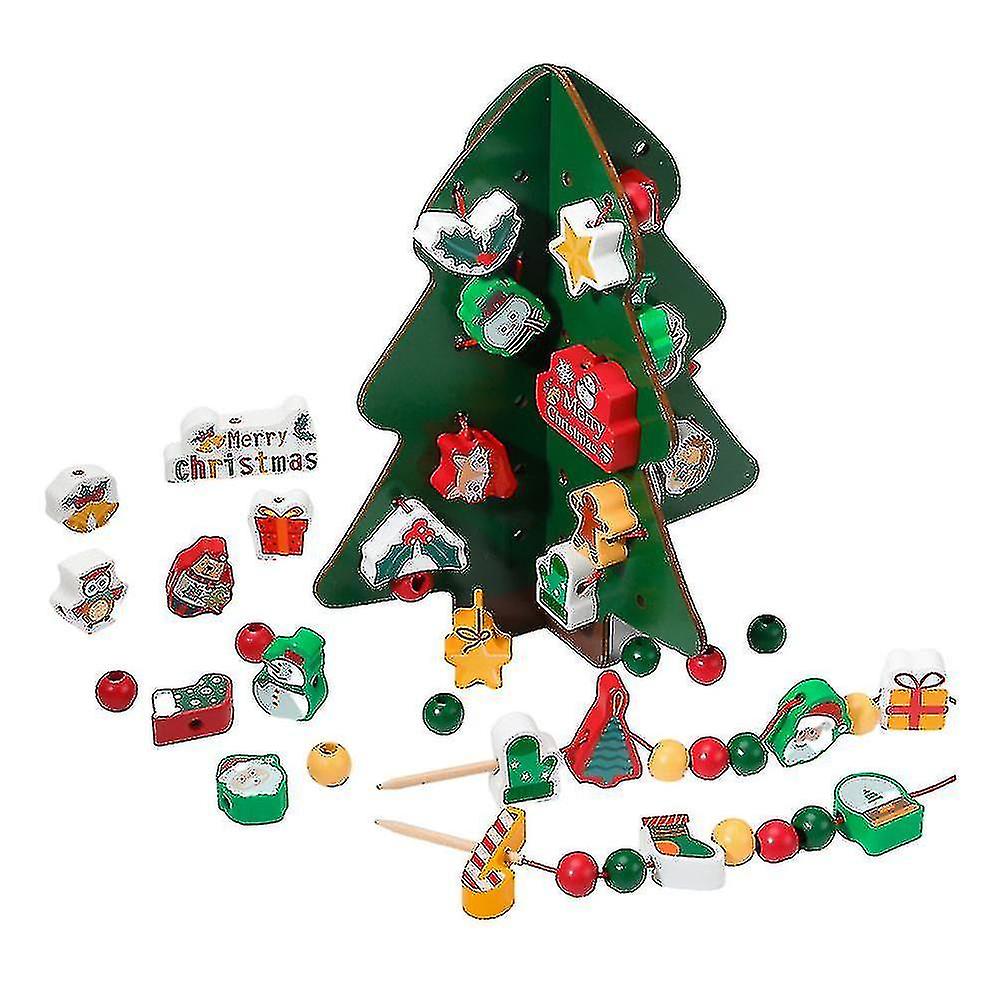 1 Set Of Christmas Beading Ornaments Wooden Toys Kids Diy Christmas Gifts