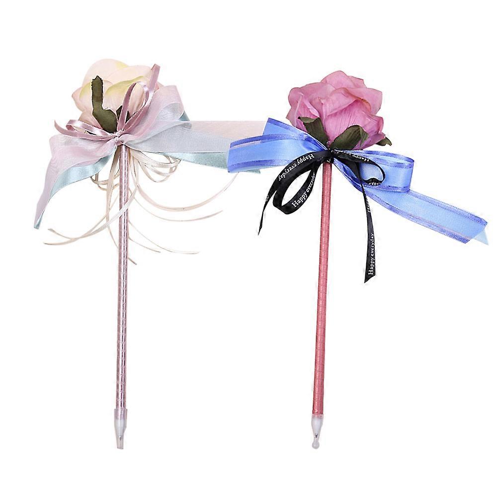 1 Set 2pcs Ballpoint Pen Long Rod Signature Pen Creative Simulated Flower Decor for Wedding Party Banquet