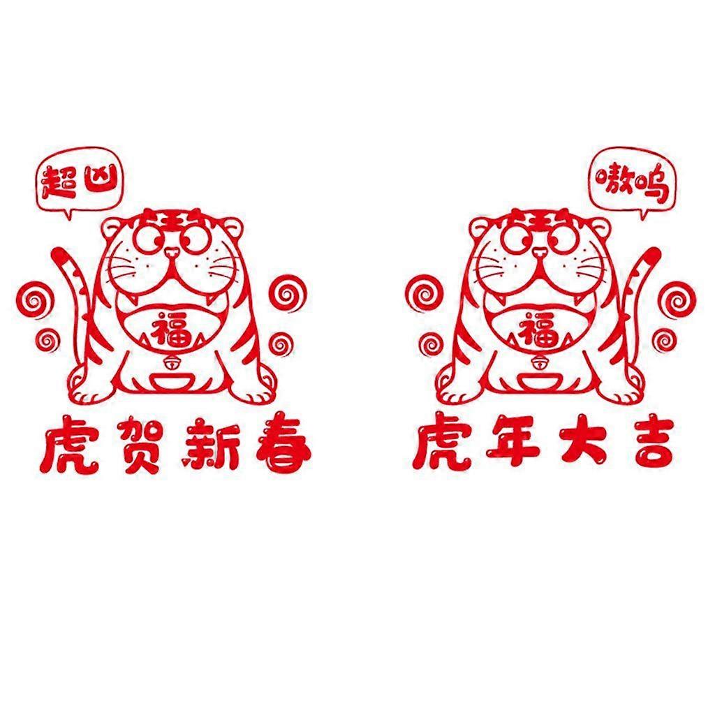 1 Set 2022 Chinese Tiger New Year Window Clings Red Flocking Couplets Wall Stickers Ornament Blessing Wishes Sign Glass Decals Home Decor