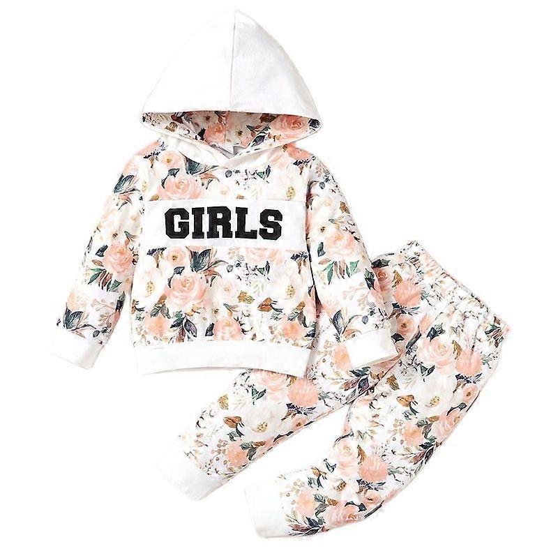1-5 Years Kids Girl 2PCS Clothes Set Flower Print Hoodie Long Sleeve Top+Pant Autumn& Winter Warm Outfit for Girl Daily WearKIDS Outfit Sets