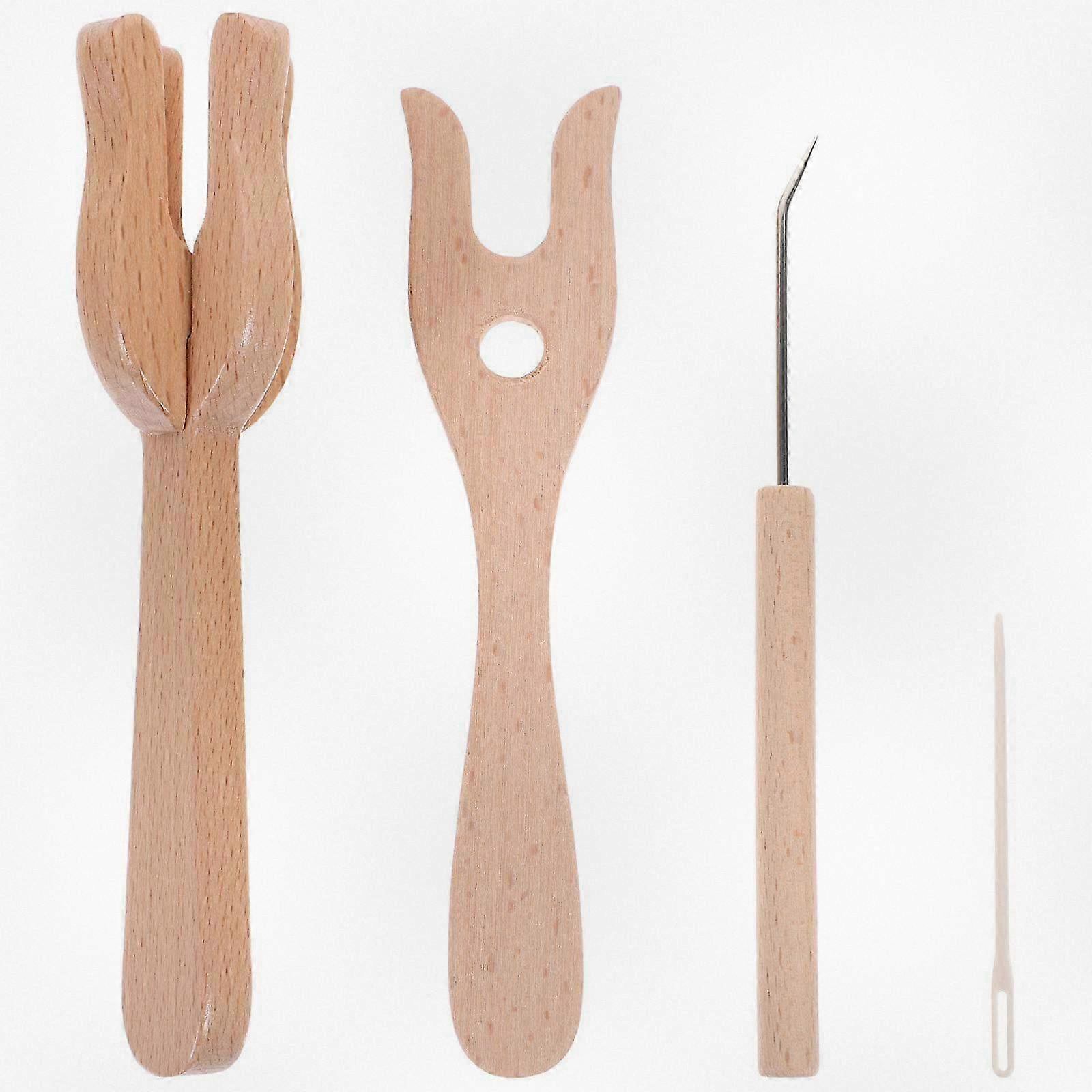 1 Set of Craft Crochet Needles and Knitting Fork with Wooden Bend Needle and Plastic Sewing Pin for Weaving Projects