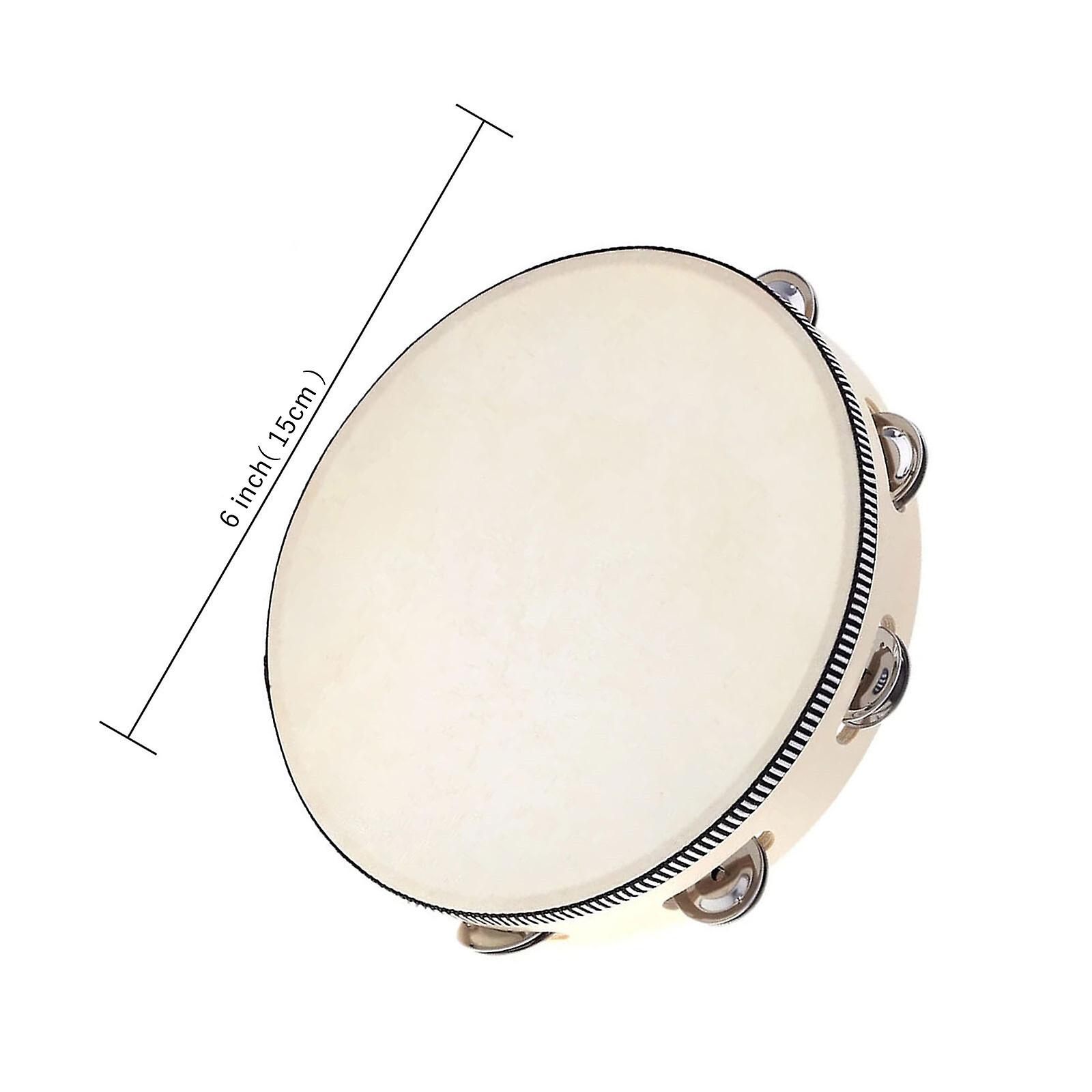 10" Musical Tambourine Wood Hand Held Tamborine Drum Round Percussion Gift