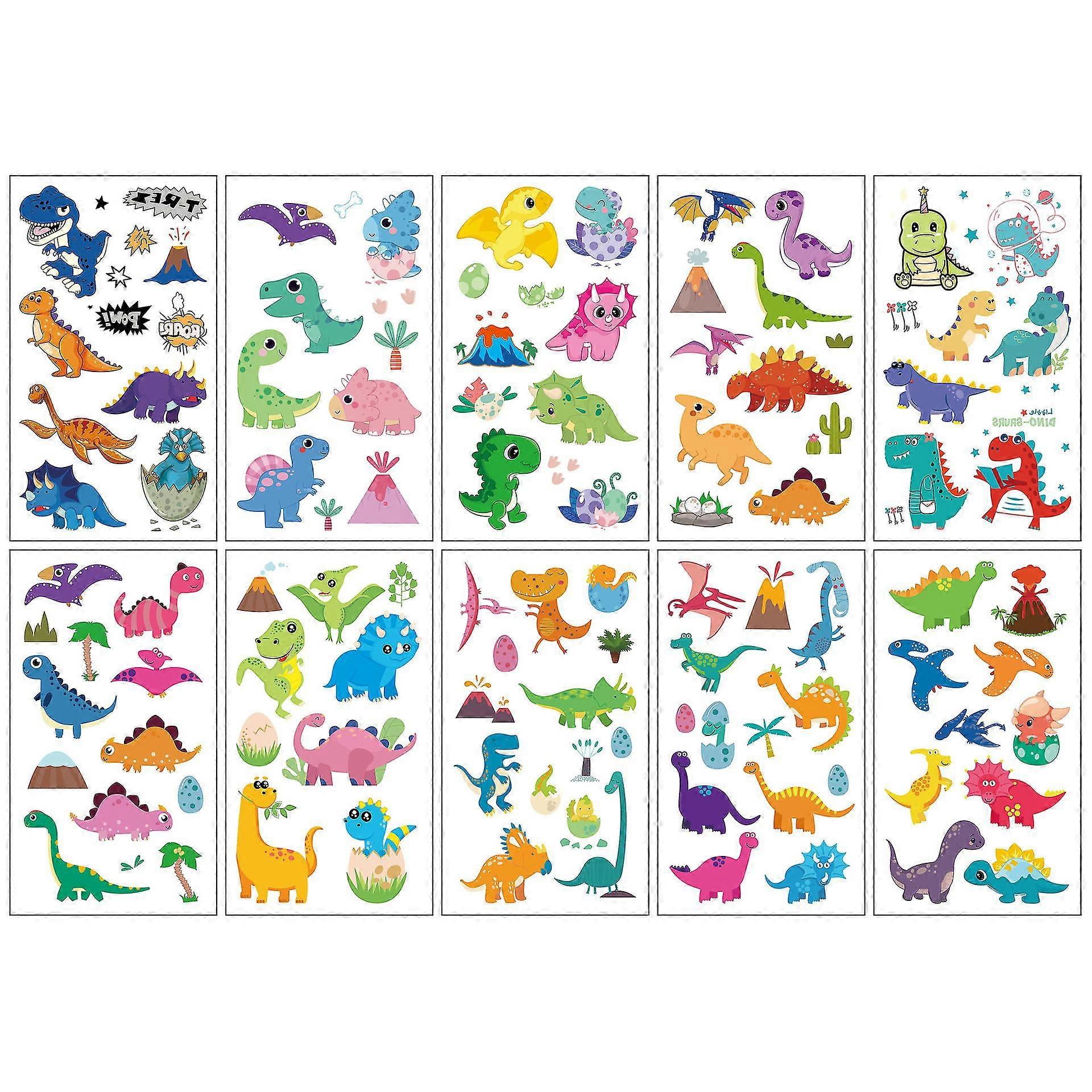 10 Sheets Dinosaur Temporary Tattoos,boys Tattoos Waterproof Fake Tattoos Dinosaur Cartoon Tattoo Stickers For Children Party Bag Fillers Kids' Tattoo