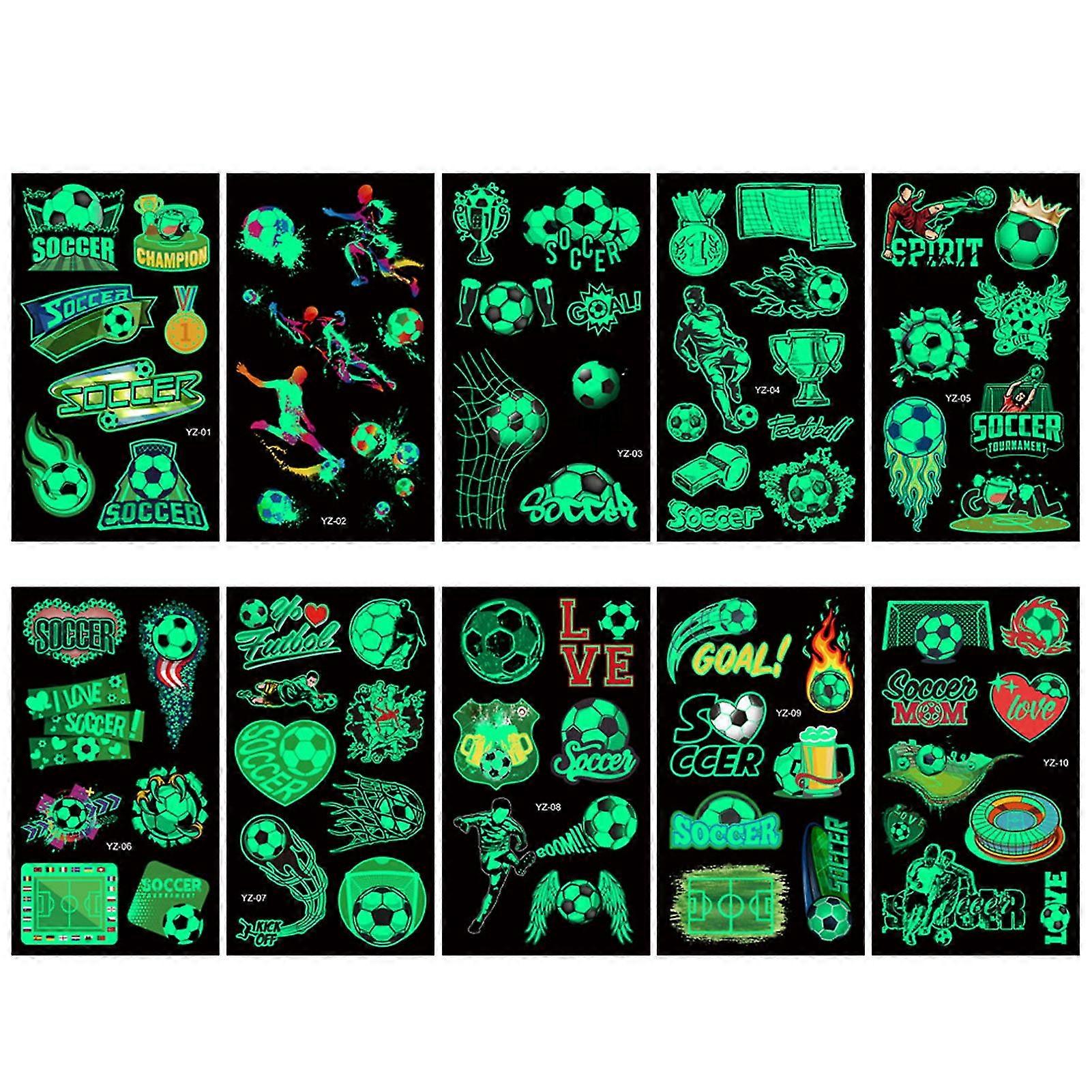 10 Sheets /set Soccer Ball Glow Temporary Tattoos Stickers For Kids, Glow In The Dark Soccer Tattoo Stickers, Soccer Theme Luminous Temporary Tattoo S