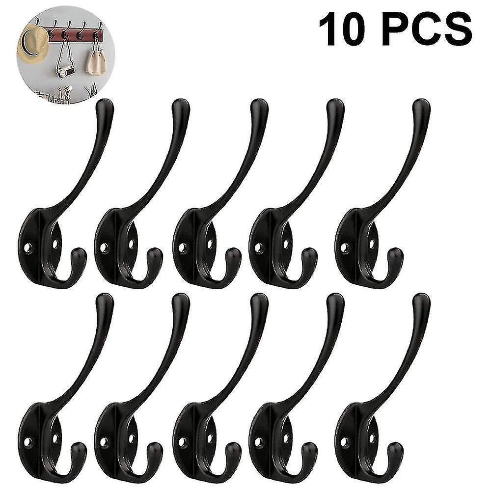 10 Pack Rustic Coat Hooks Wall Mounted Heavy Duty Double Hooks Retro(Black)