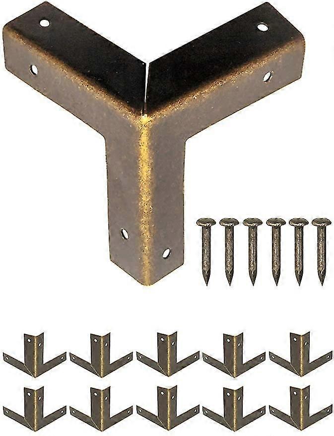 10 Pack Antique Metal Furniture Corners, Edge Protector Corners For Crates And Furniture - Vintage Style Aged Brass - 32 X 32 Mm