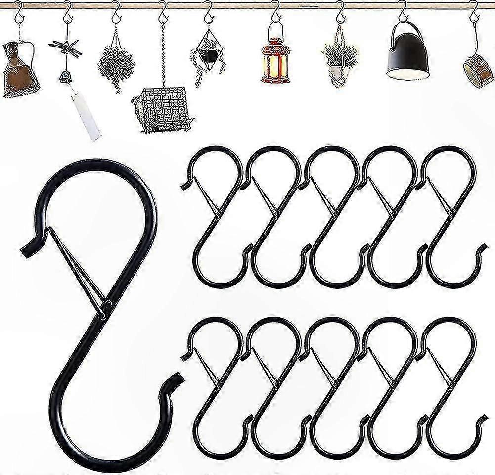 10-Pack Heavy Duty Metal S Hooks for Hanging, Black with Safety Feature