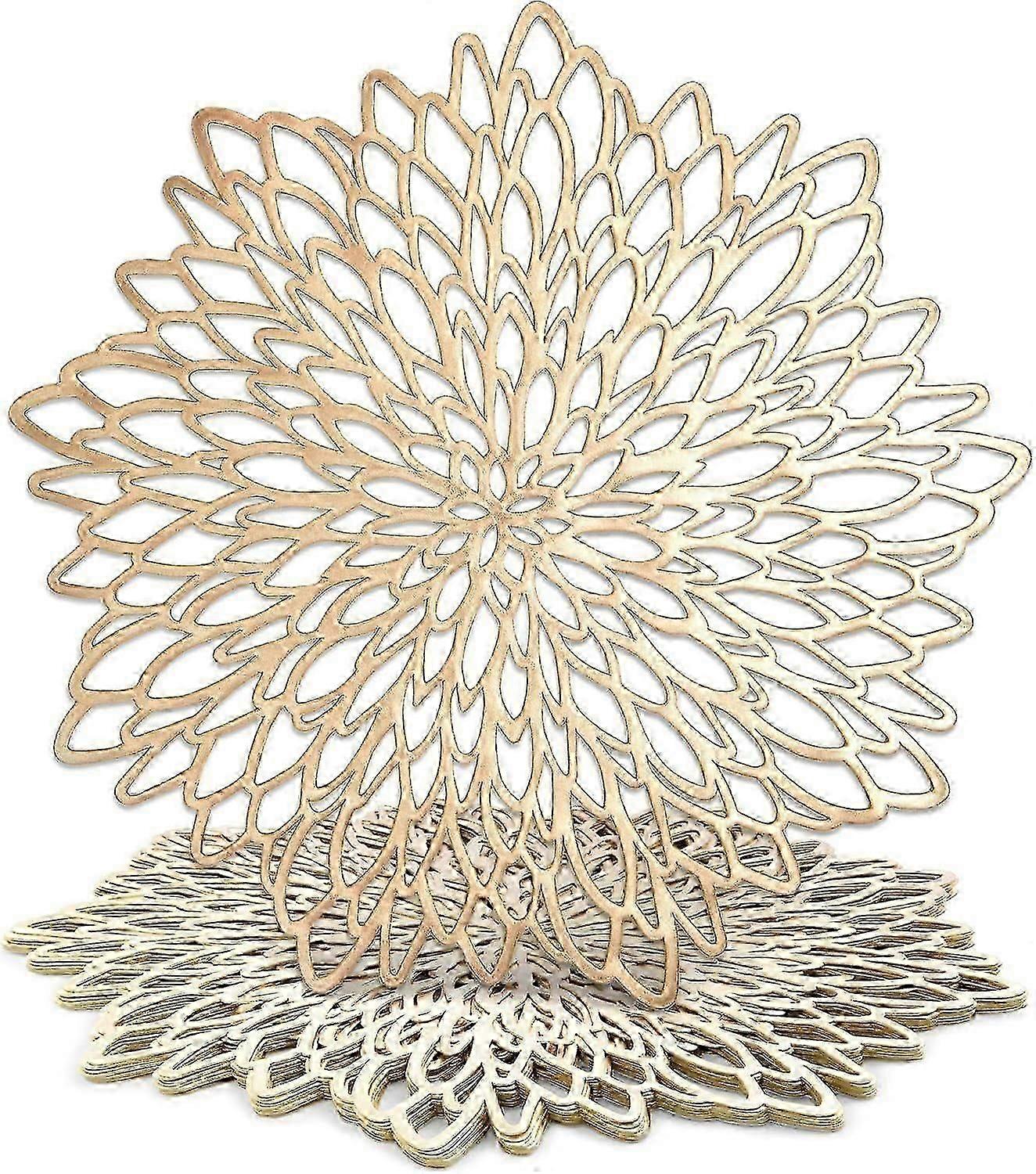 10-Pack Gold Vinyl Placemats - Round Leaf Design Table Chargers for Fall Dining