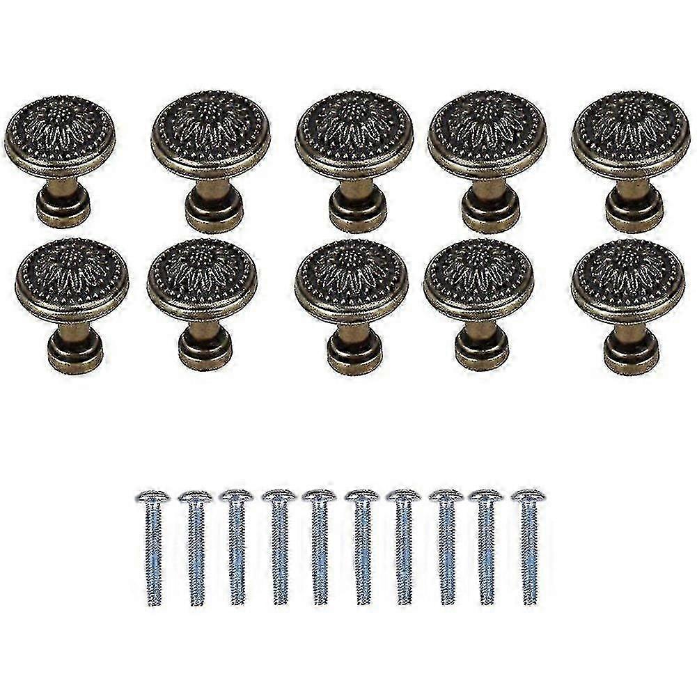 10 Pack Antique Flower Round Handle Kitchen Cabinet Cupboard Door Drawer Pull Knob With Screws 25 X-YGWL