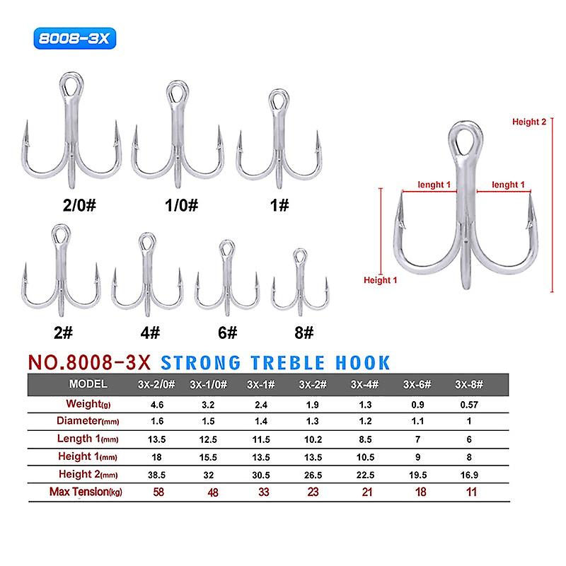 10Pcs/lot Saltwater Fishing Hook Matte Tin Treble Hook 2/0#-1/0#-1#-2#-4#-6#-8# High-carbon Steel High Strength 3x Hook