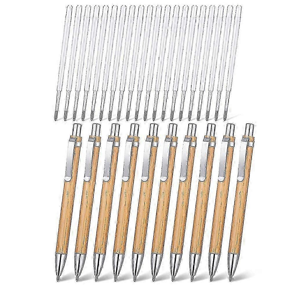 10 Pieces Bamboo For Journaling, Blue Ink Ballpoint And Refills, Retractable Wooden , Office Produc