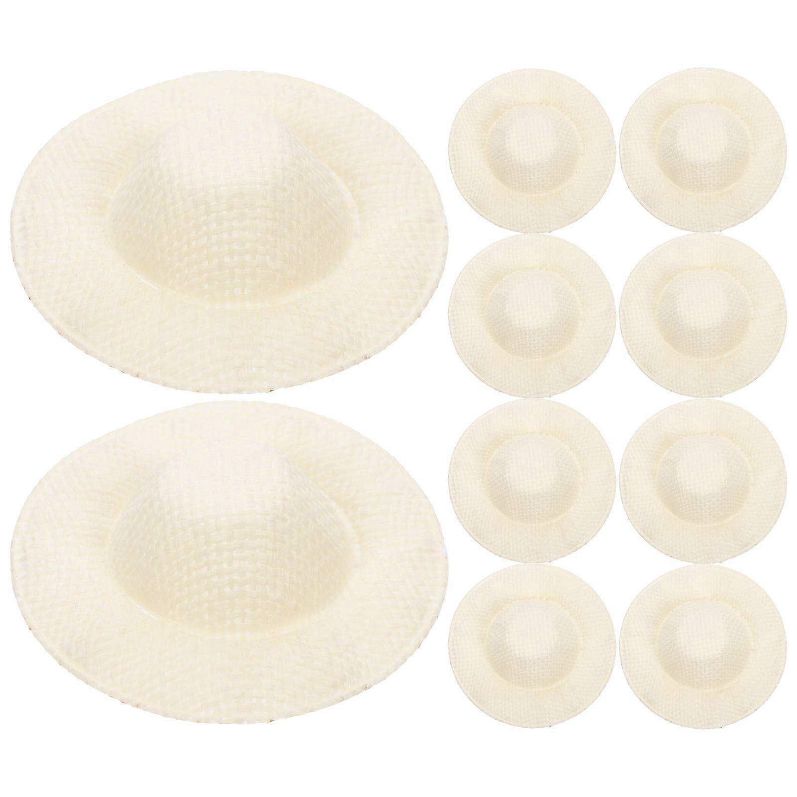 10pcs Tiny Straw Hats Mini Doll Hats Mini Woven Hat Doll Headwear DIY Accessories