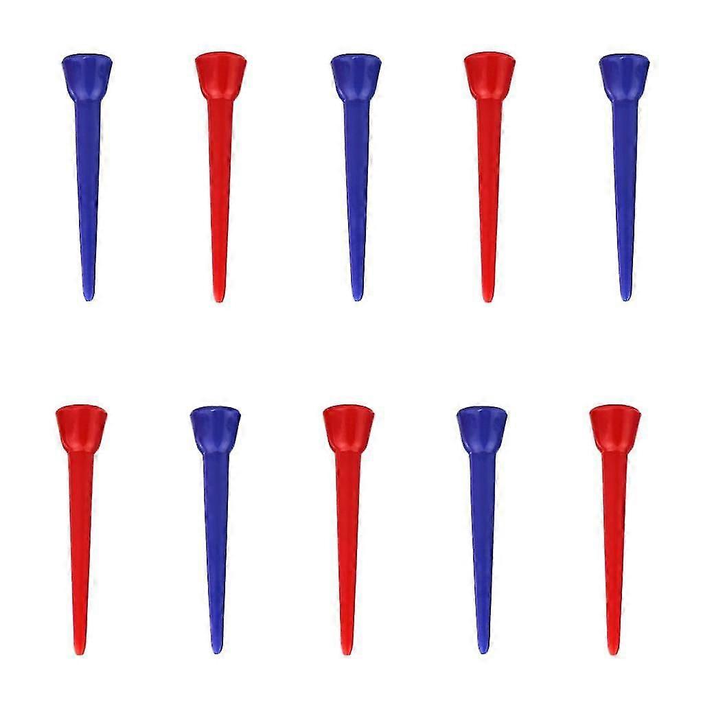 Reinforced PE plastic golf, more durable and lasts longer than wood tees Multi-color golf tees, blue and red Three sizes selected, perfectly match various golf clubs Convenient package, using a seal to avoid spilling and messes Easy to place the golf ball on the tee and stable for you to hit Specification: Material: PE plastics Color: blue/red Length: 2.13in/54mm Width of the seat: 0.47in/12mm Package Includes: 10 Pieces Golf Tees Note: Please understand that the color of the item will be sent randomly (blue and red).