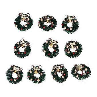10Pcs Christmas Wreaths Miniature Scene Models Dollhouse Accessories for Above 3 Years Old