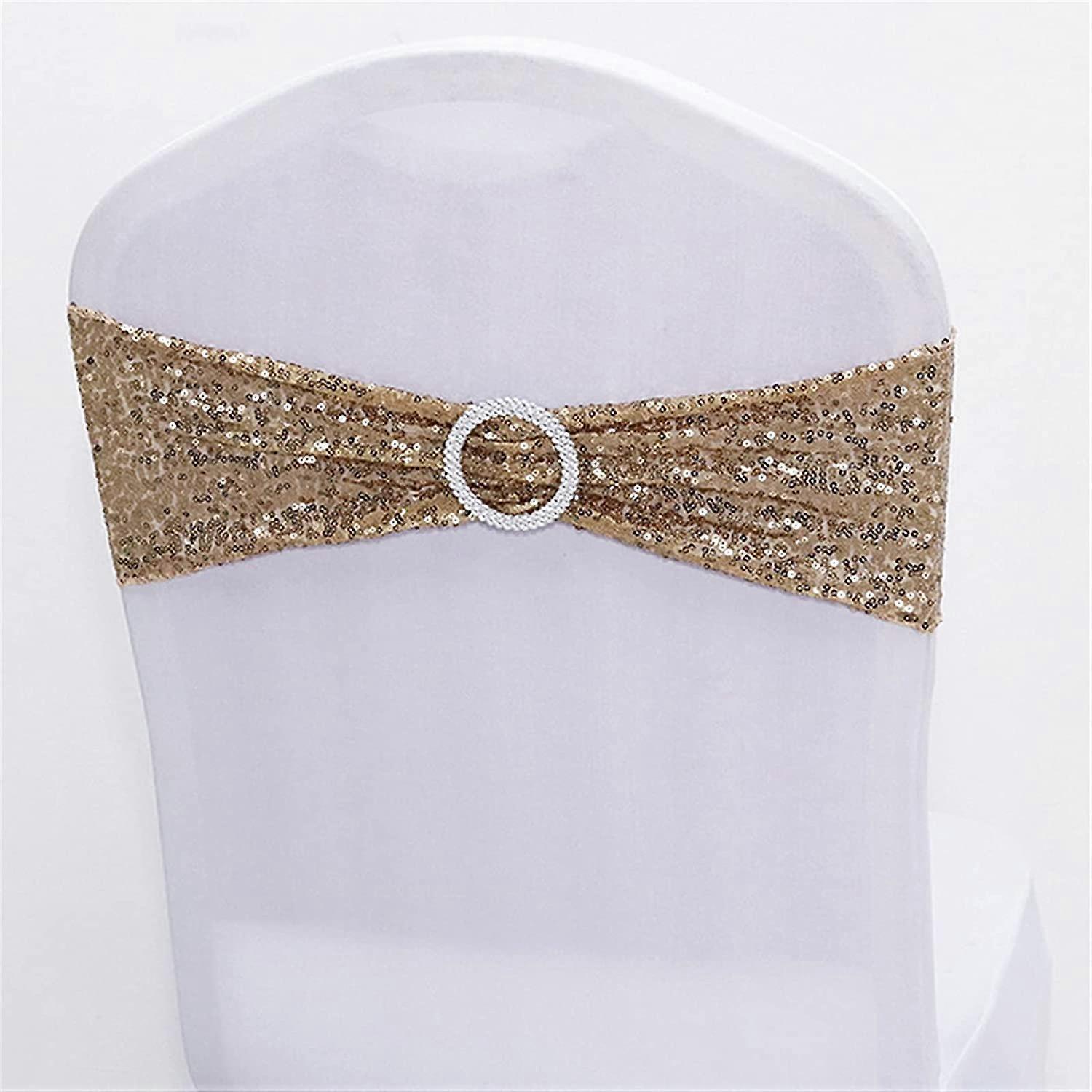 10 PCS Stretch Sequin Chair Sashes Chair Stretchy Spandex Bands for Wedding Reception Events Banquets Chairs Decoration (Champagne)