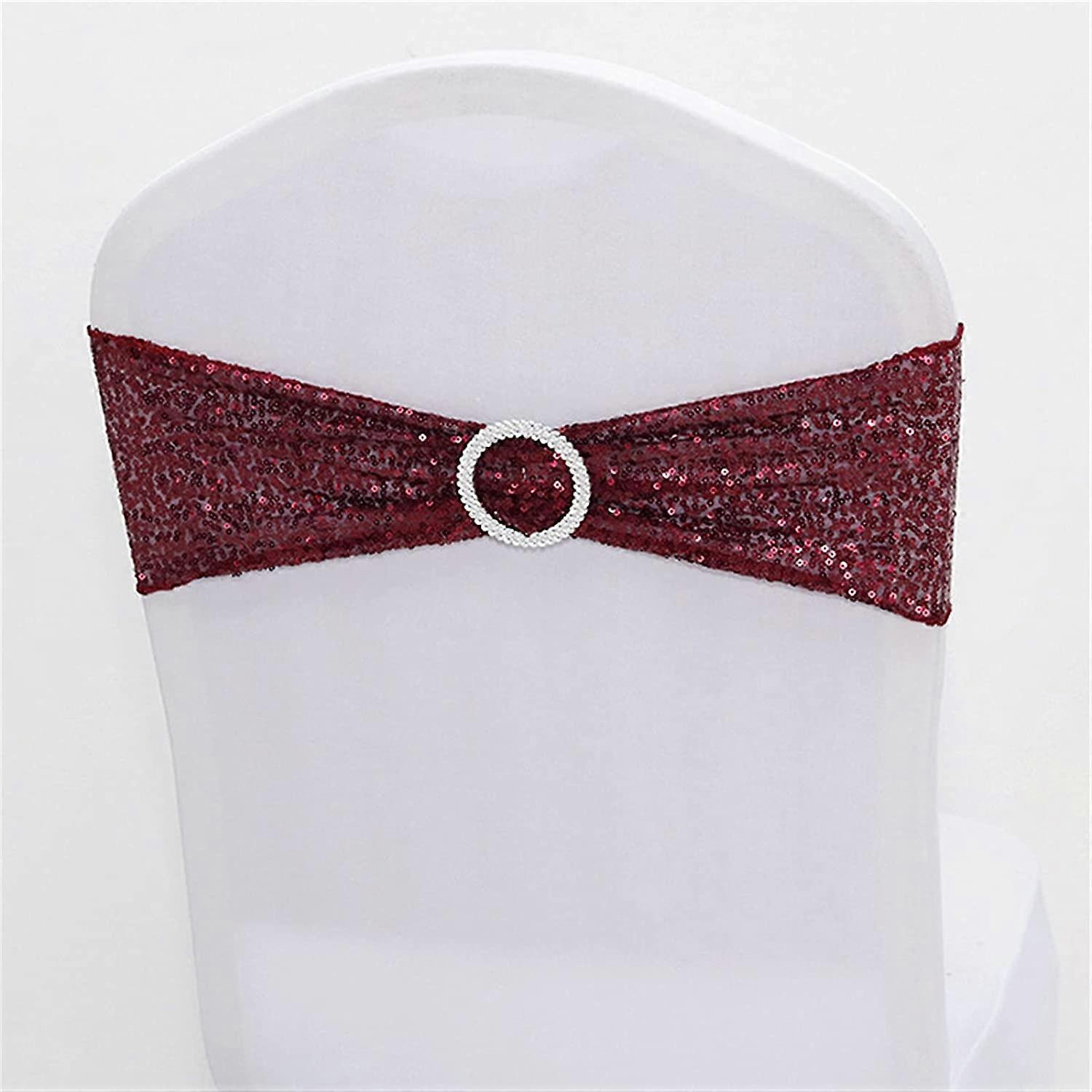 10 PCS Stretch Sequin Chair Sashes Chair Stretchy Spandex Bands for Wedding Reception Events Banquets Chairs Decoration (Burgundy)