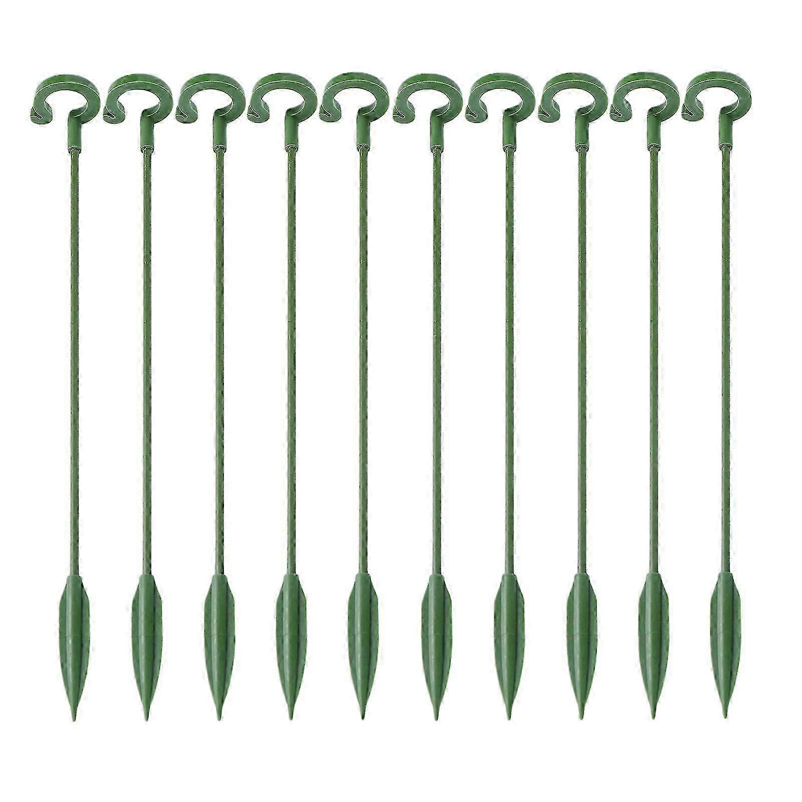 Durable and Sturdy: Our plant support stakes are made with a powder spraying process, ensuring they are weather-resistant, rust-resistant, and will not fade or bend easily. They are thicker and stronger than most other wires on the market, providing excellent support for your plants.Elegant Design: With beautiful lines and a smooth surface, these stakes blend seamlessly into stem plants. Their dark green appearance makes them almost invisible, adding to the natural beauty of your garden without distracting from it.Extended Size: Measuring 17-48cm in length, our stakes are longer than ordinary ones on the market. This allows for deeper soil insertion, ensuring stability and preventing them from falling off easily.Versatile Functionality: These stakes effectively support stem plants to grow straight and healthy, protecting them from strong wind, heavy rain or their own blooming weight. They also prevent stems from bending and intertwining with each other.Smart Structure: The open slots are designed to accommodate stem plants without causing harm. The inner diameter is large enough for most small single-stem plants, offering protection without restricting growth. Introducing our plant support stake, designed with a powder spraying process for a smooth, elegant finish that lasts for years without chipping. Its dark green color blends seamlessly with stem plants, making it almost invisible. Crafted to be thicker and stronger than most wires on the market, it stands firm against weather conditions and rust, offering better support than wood. Our stakes are 17-48cm long, longer than standard stakes, providing more stability and less likelihood of falling off. Ideal for single-stem flowers and plants like amaryllis, roses, orchids, sunflowers, zinnias, peonies, lilies, tomatoes. The stake holder supports stem plants to grow straight and healthy while protecting them from strong wind or heavy rain. The open slots are designed to house stem plants without causing harm and the inner diameter is large enough for most small single-stem plants. This stake not only supports your plants but also enhances their beauty. Item Name: Plant Support Stake Material: Plastic Features: Long-lasting, Rust-resistant, Reusable, Stable Size Details: 17cm, Length: 17cm/6.69" (Approx.)27cm, Length: 27cm/10.63" (Approx.)38cm, Length: 37cm/14.57" (Approx.)48CM, Length: 48cm/18.9" (Approx.) Notes: Due to the light and screen setting difference, the item's color may be slightly different from the pictures.Please allow slight dimension difference due to different manual measurement. Package Includes: 10 x Plant Support Stakes