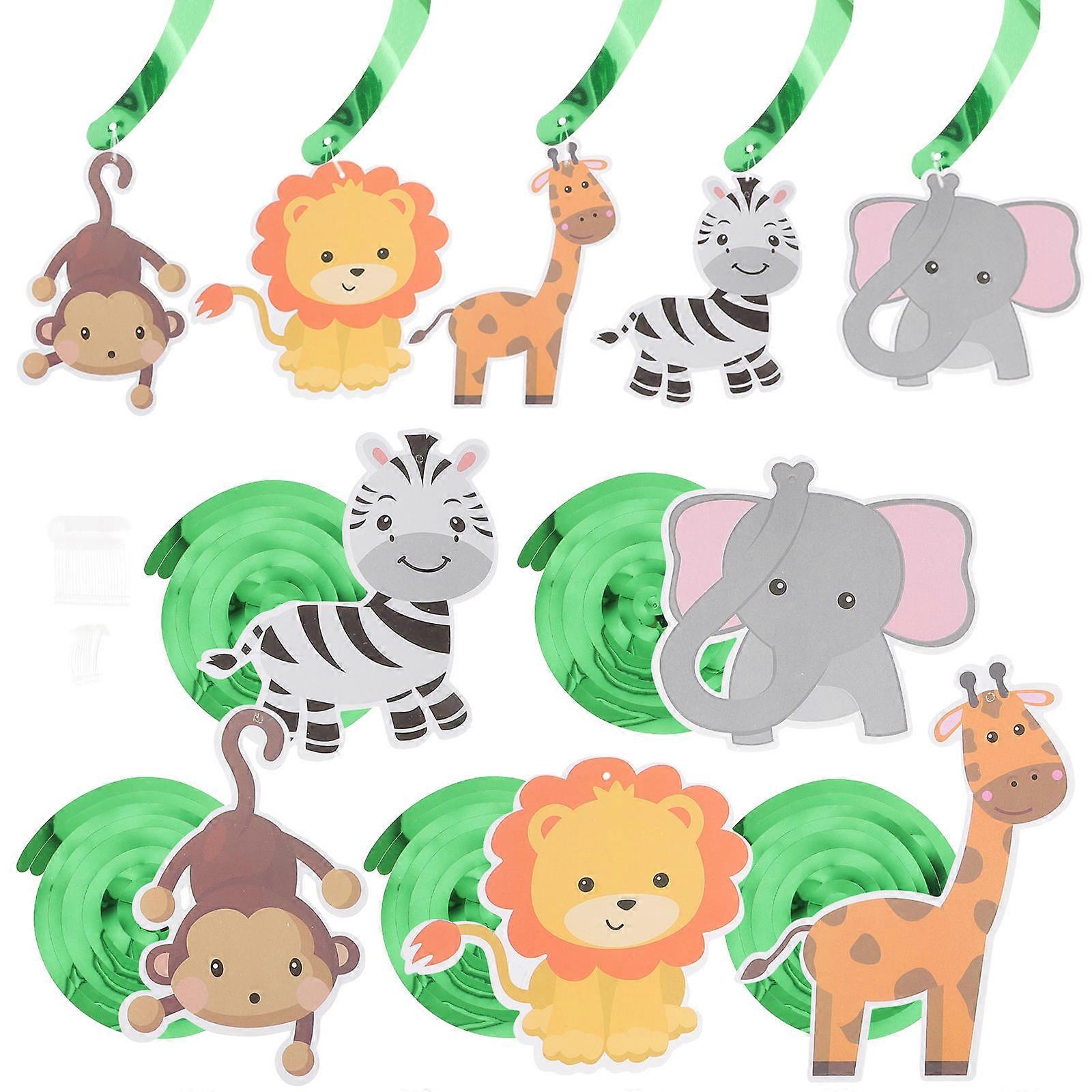 10PCS Jungle Animal Hanging Decorations for Birthday Party – Vibrant Ceiling Swirls Easy to Install Party Supplies