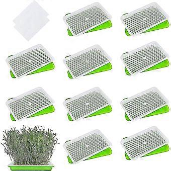 10pcs Seed Sprouter Tray With Drain Holes - Bpa Free Seed Garden Plant Germination Propagation Trays, Soil-free Wheatgrass Tray Sprouter Microgreens G
