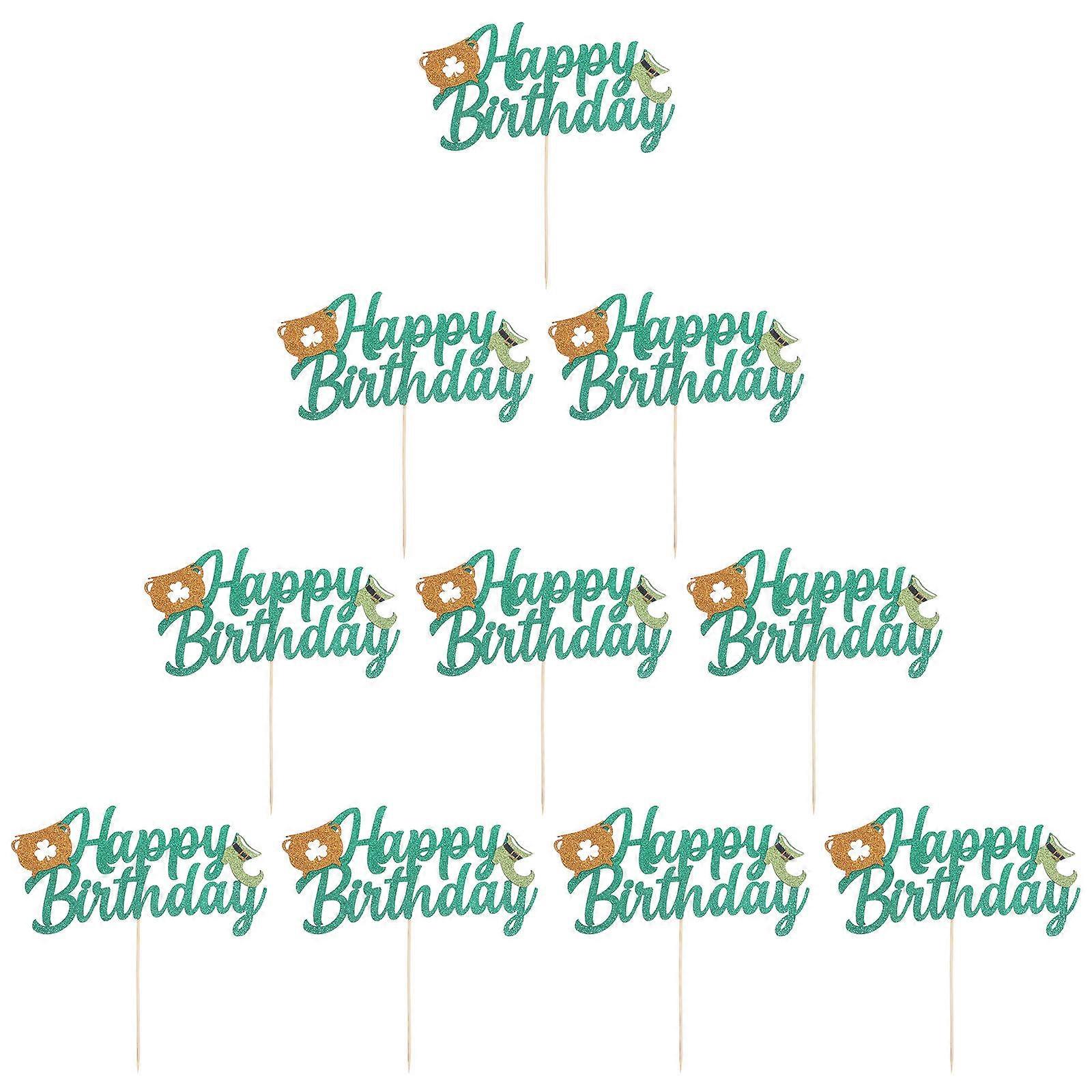 10Pcs St. Patrick's Day Cupcake Toppers Assorted Color Bamboo and Paper Cake Decorations
