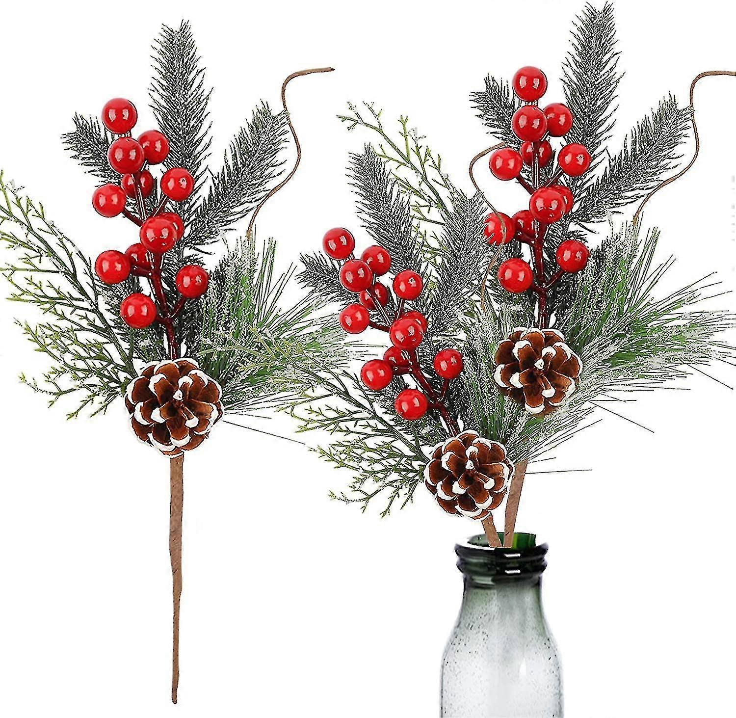 10pcs Christmas Berries Stems Artificial Pine Picks Pine Spray Floral Stems Red Berry Picks For Wedding Garden