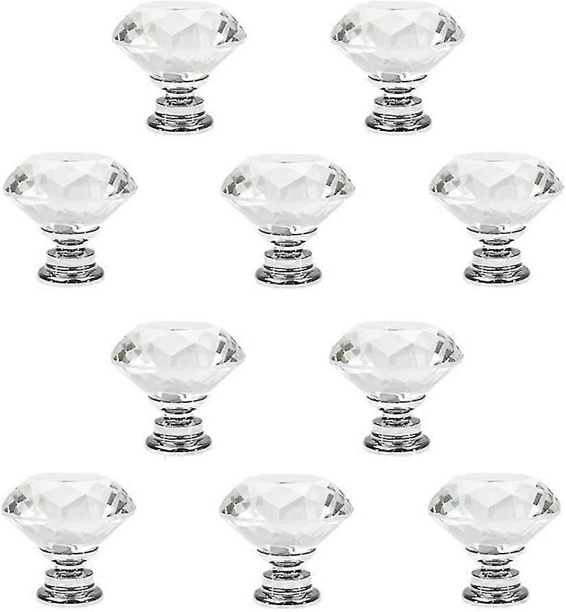 10 Pcs Crystal Glass Cabinet Knobs, Crystal Knobs, 30mm Diamond Shape Pulls Handles For Drawer Kitchen Cabinets Dresser Cupboard Wardrobe