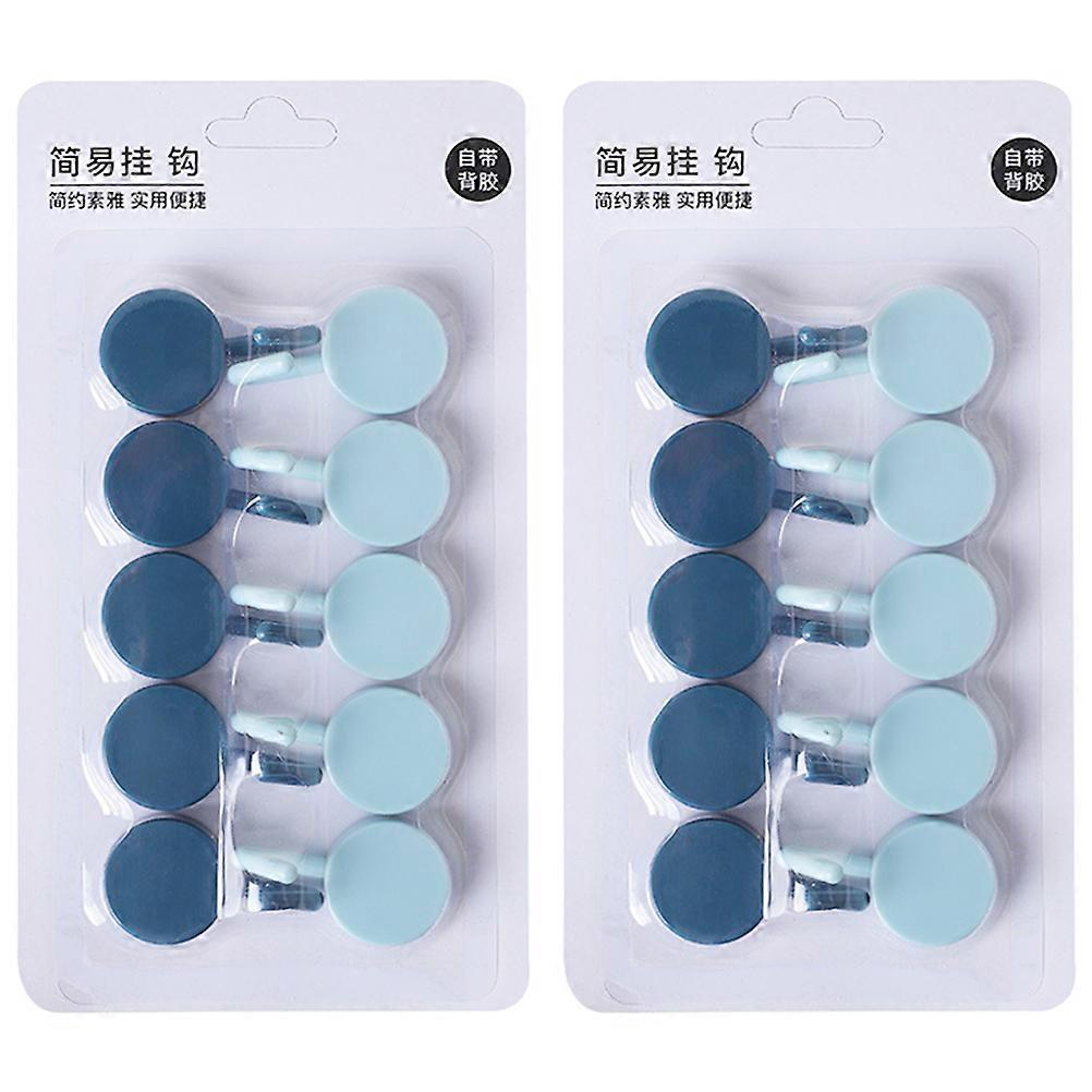 10pcs Punch Self Adhesive Hooks, Dark Blue & Light Blue, Wall Hangers for Kitchen & Bathroom, Decorative Storage for Clothes, Bags & Hats, Easy