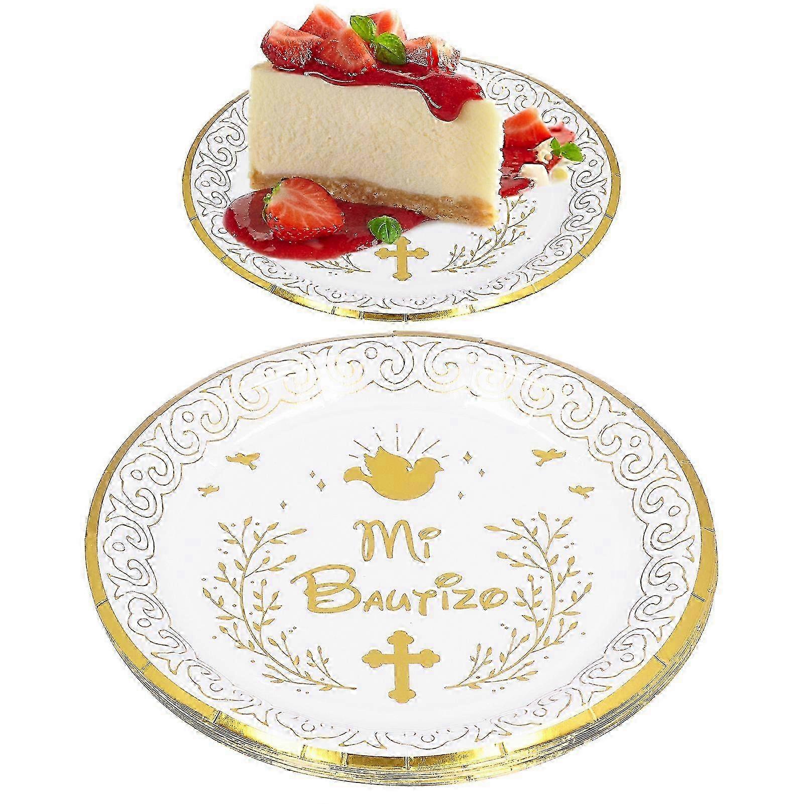10Pcs Bronzing Paper Plates Mi Bautizo Microwave Safe Cut Resistant Disposable Round Plates
