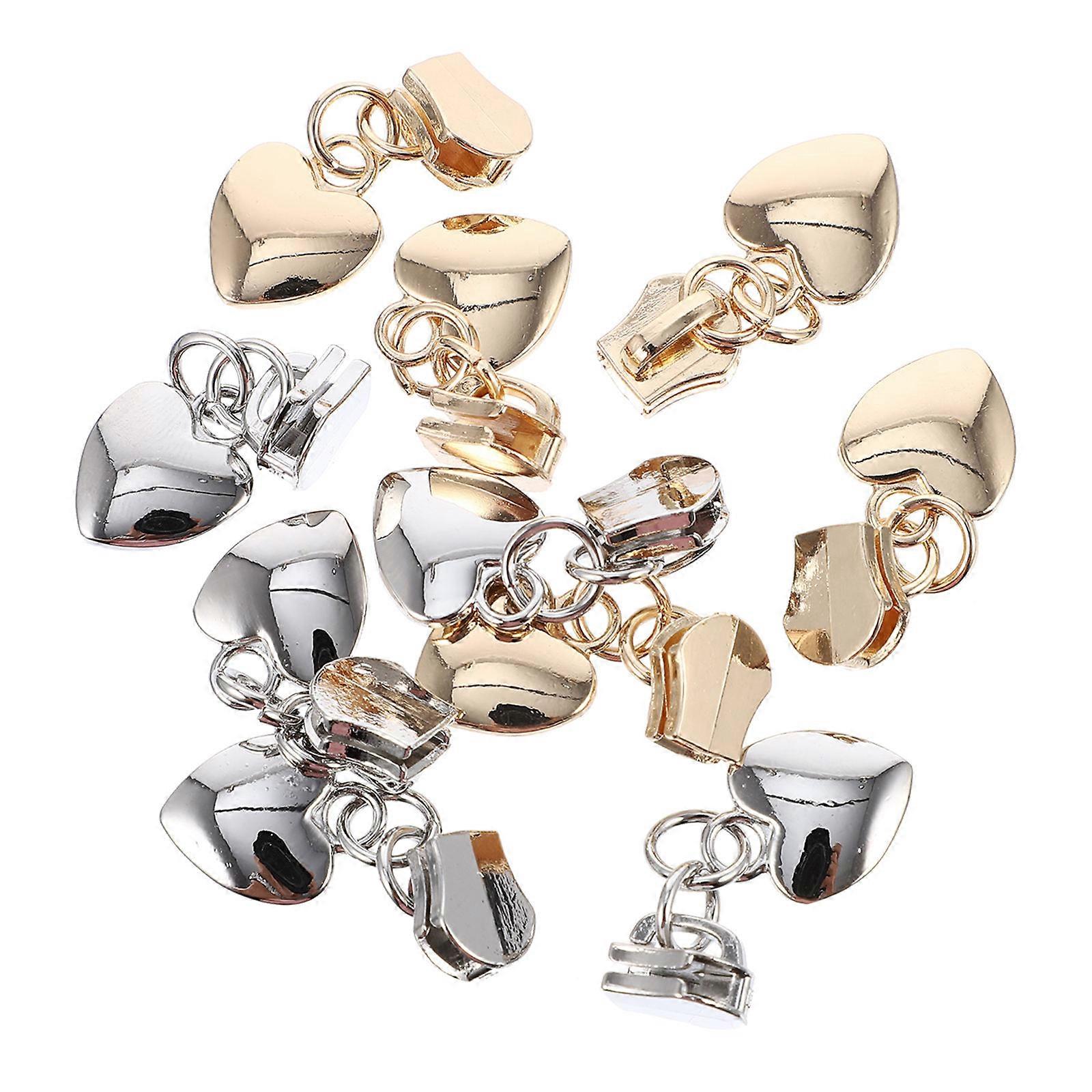 10pcs Assorted Color Metal Zipper Pullers for Bags Suitcases Durable Heart Design Decor