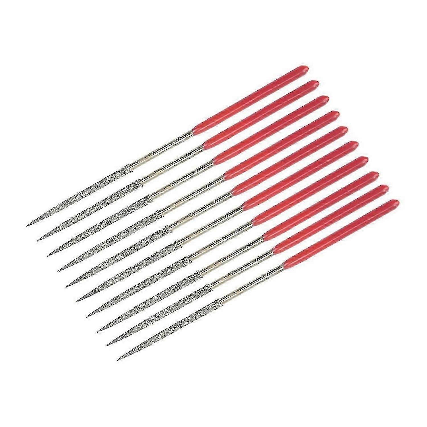 Carbon Steel Material: The file is made of carbon steel material, which has high hardness, is not easy to deform, is wear-resistant and durable, and has a longer service lifeElectroplated High Hardness Diamond: Surface electroplated with high hardness diamond, mainly used for trimming details, filing high hardness steel, glass ceramics, polishing tools, removing burrs and burrs, chamfers, etc.Anti Slip Handle: adhesive wrapped handle, smooth and round handle, comfortable to grip. The handle is wrapped with a frosted surface, which is firm and not easy to fall offScope of Use: It can be widely used for shaping and polishing stones, jade, ceramics, walls, metals, saw , glass, wood, and jewelryProduct Dimensions: total length 140mm/5.5in, file length 55mm/2.16in, handle diameter 3mm/0.12inColour:Red & SilverMaterial:DiamondSize: 3x140mmPackage Contents:10x Needles FileOnly the above package content, other products are not included.Note: Light reflection and different displays may cause the color of the item in the picture a little different from the real thing. The measurement allowed error is +/- 1-3cm.