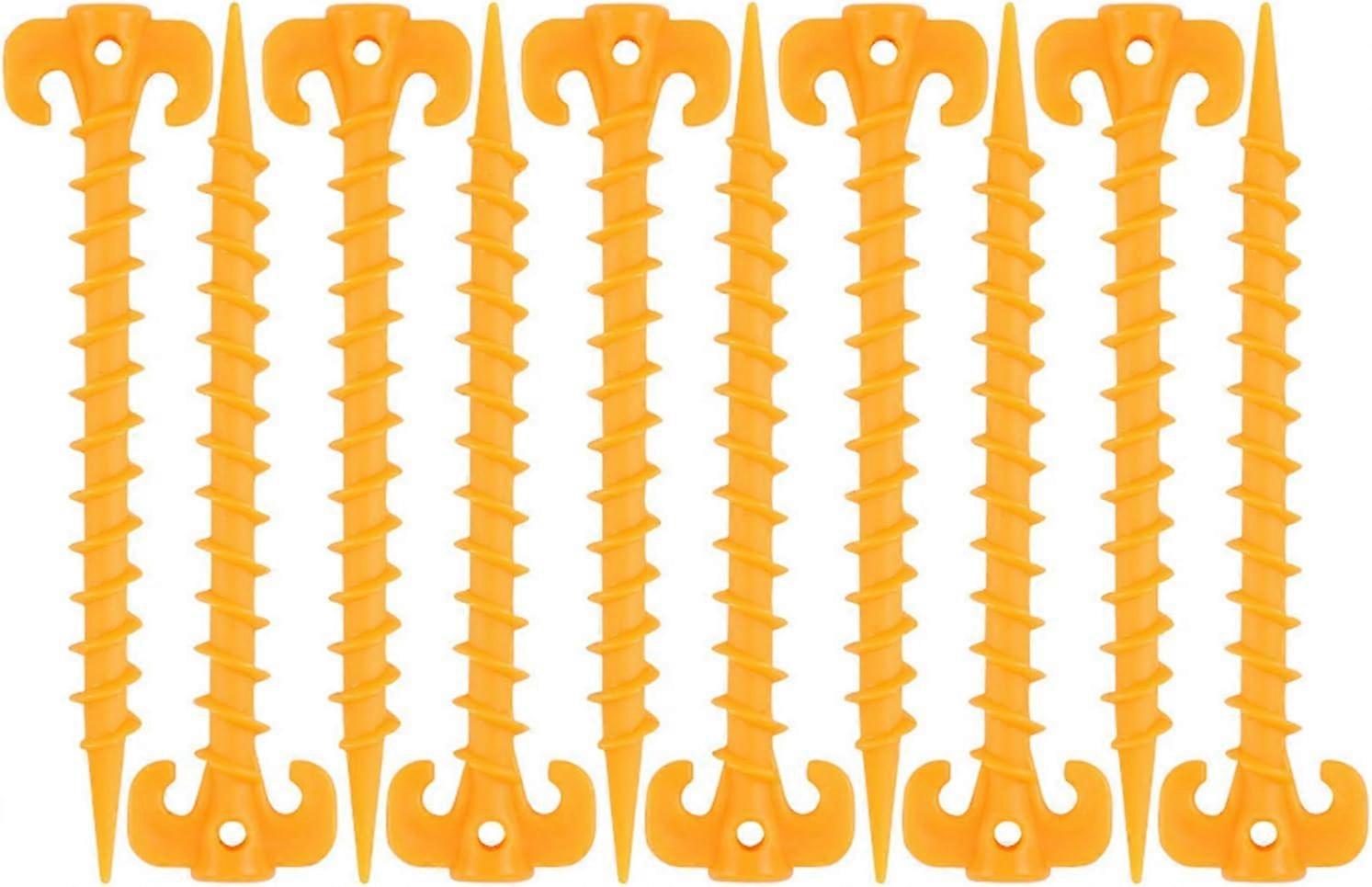 Versatile- These tent pegs are perfect for awnings, tents, gazebos, tarps, groundsheets, lawns, and gardens. Specifications- 7.9 inch/20cm in length, long enough to hold a tent. 0.67 oz / 19 g, tent pegs that are light to carry. Made of high-quality and durable plastic. Convenience- Spiral-shaped tent stake, easy to screw and screw with bare hands, the drive tool is not needed. Upright- 10 tent pegs, enough to anchor a tent with extra backups! Warranty- If you are not 100% satisfied with this product, we offer you a 30-day money back. Also, permanent customer service for you. Color: Orange | Length:20.0 centimeters Technical description Orange Length 20 centimeters Package Dimensions 24.1 x 13.4 x 6.2 cm; 230 grams