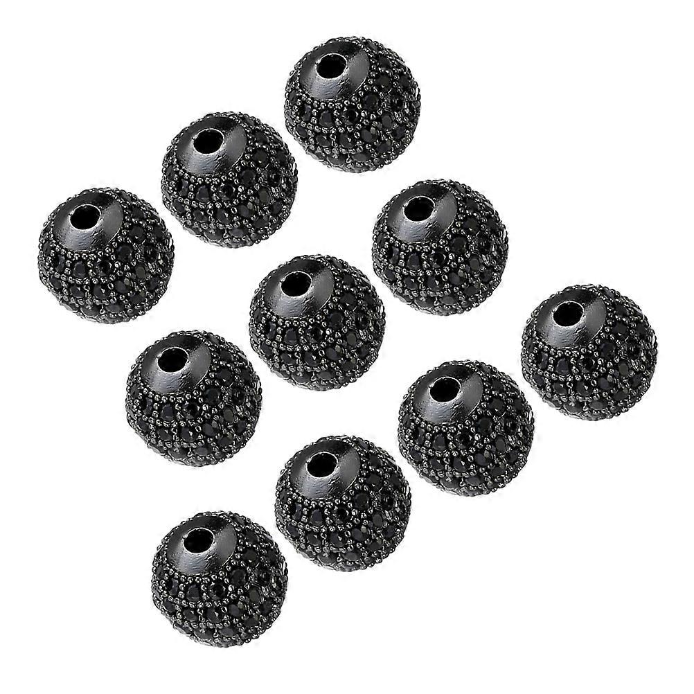 10PCS Black Alloy Beads with Cubic Zirconia for Jewelry Making Decorative Round Beads 8MM