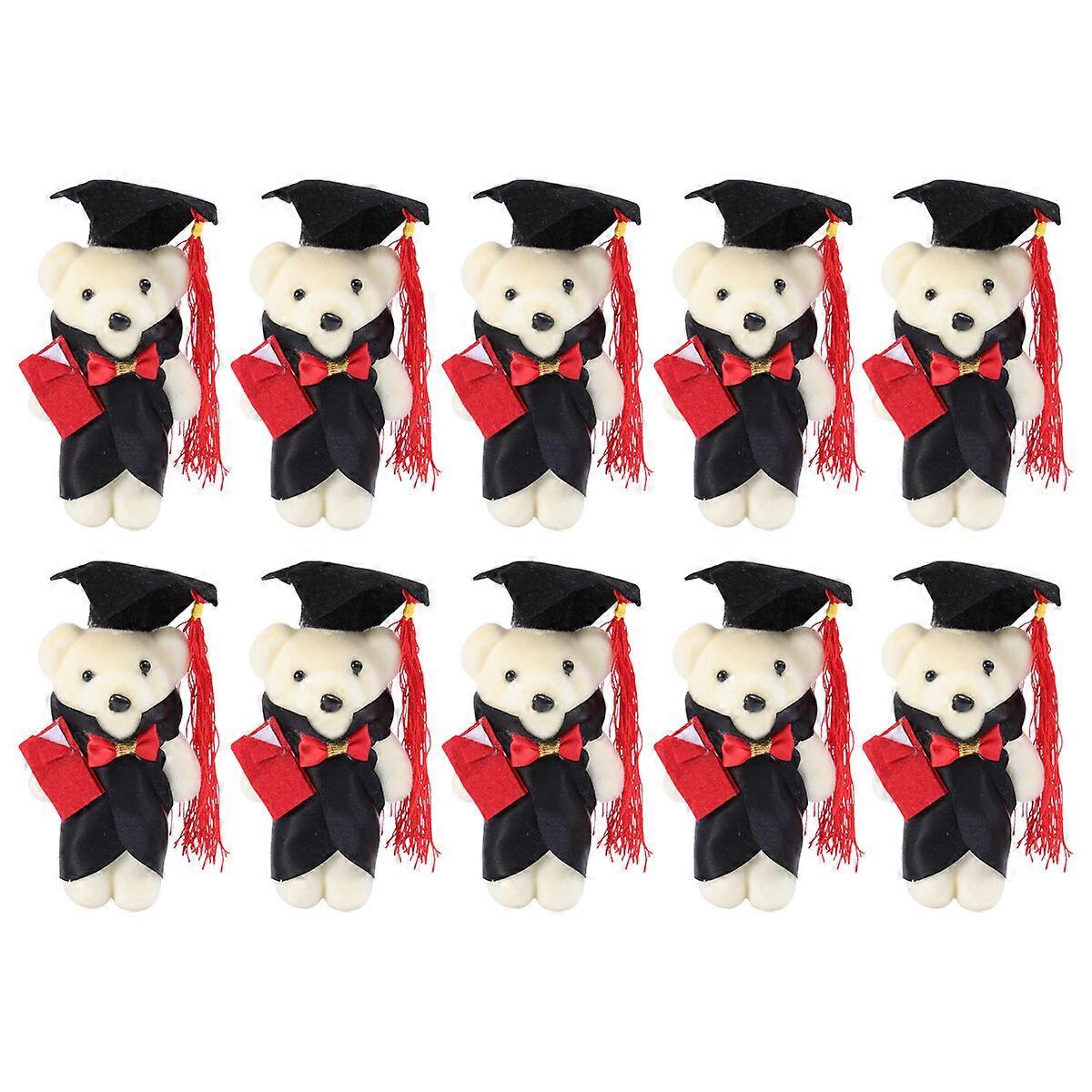 10Pcs 12cm Standing Graduation Ceremony Bear Doll Flower Bouquet Decoration for Commencement Adorable Bear Graduates Gift Accessories (Black White)