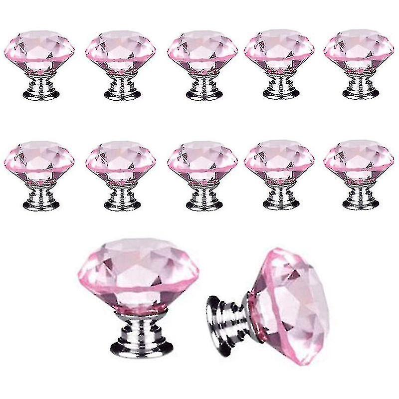 10 Pcs 30mm Glass Cupboard Knobs Crystal Diamond Shape Pull Handle For Dresser Drawers Wardrobe Kitchen Cupboards,pink (hs)