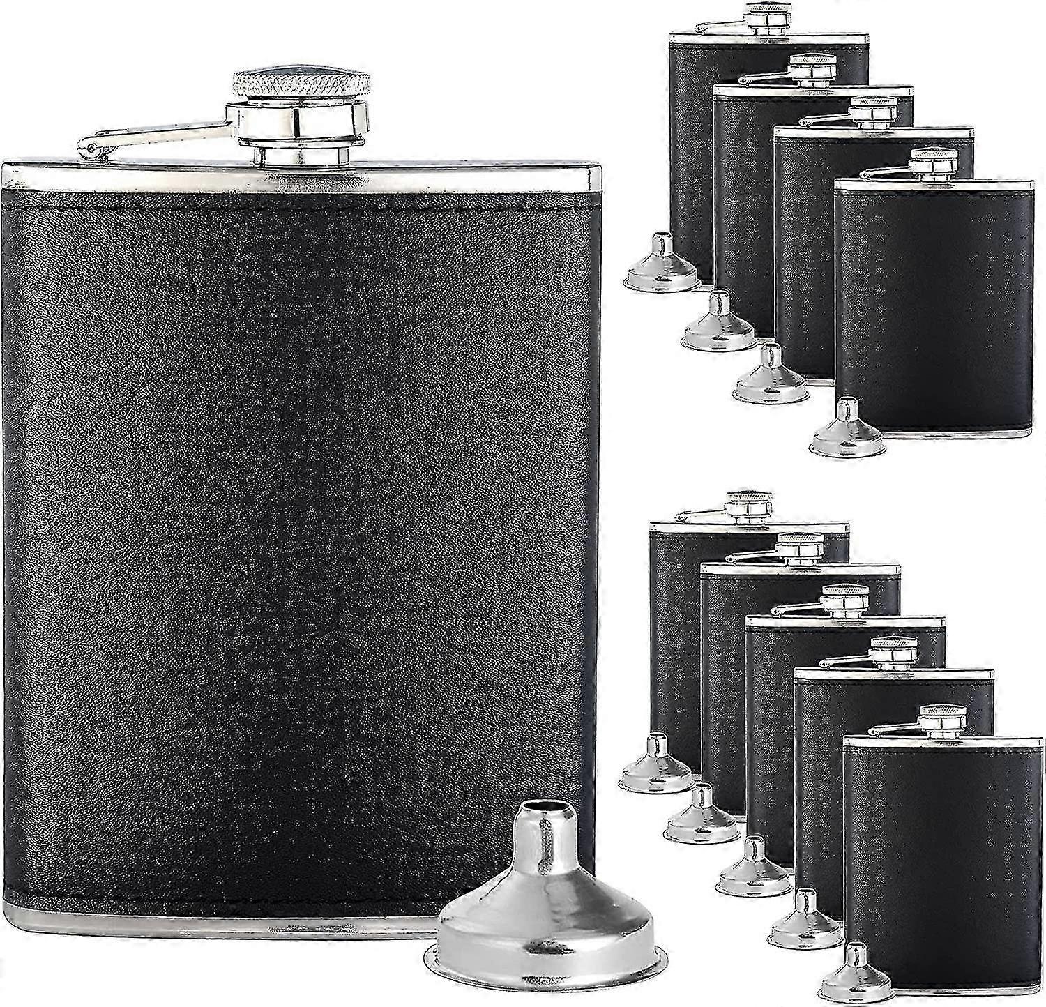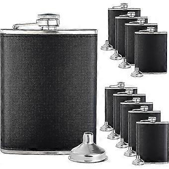10 Pcs Heilwiy 8oz Hip Flask For Liquor Stainless Steel Leakproof Black Leather With 10 Pcs Heilwiy Gift