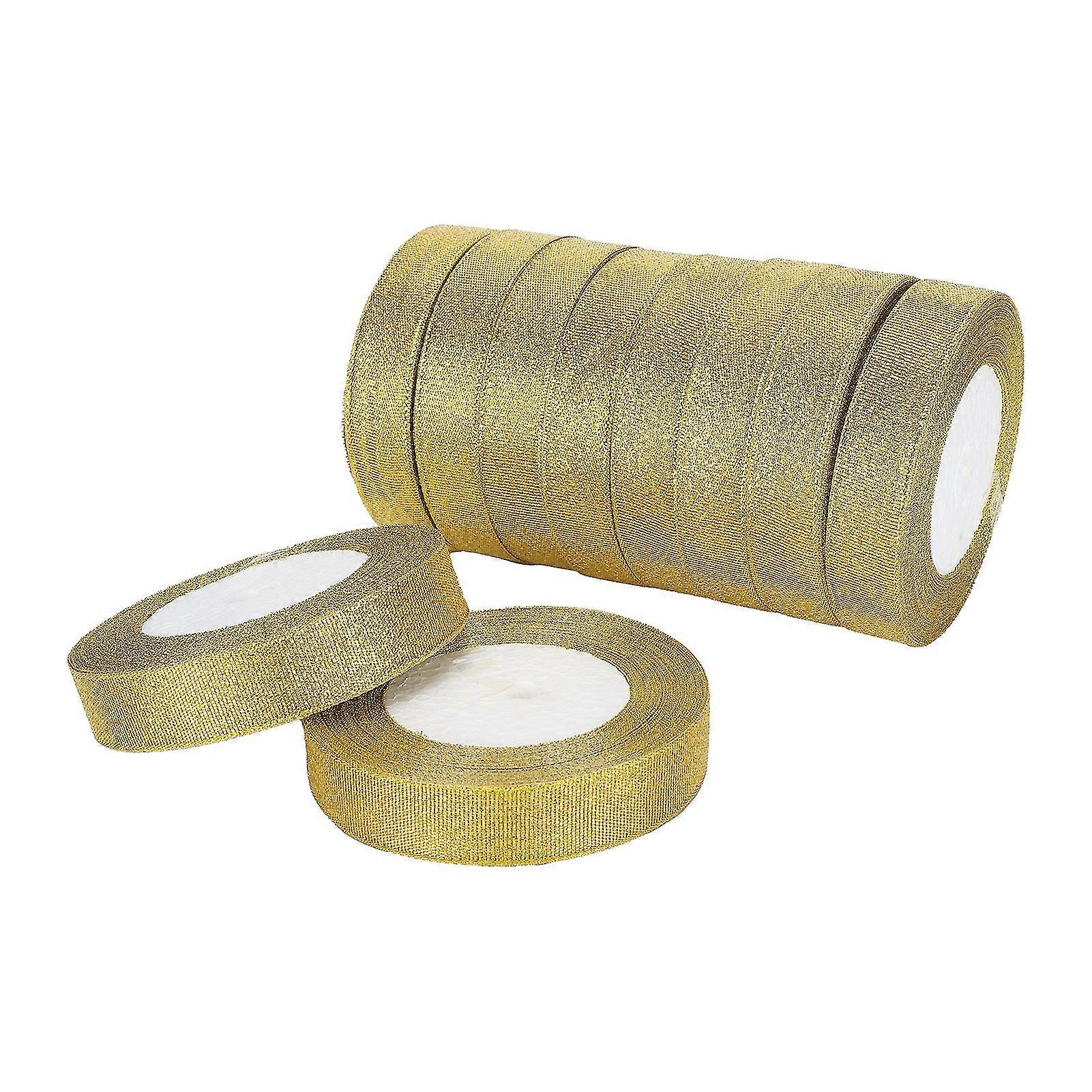 10 Rolls Golden Ribbon DIY Satin Ribbon Gift Wrapping Christmas Ribbon for Making Decorative Crafts