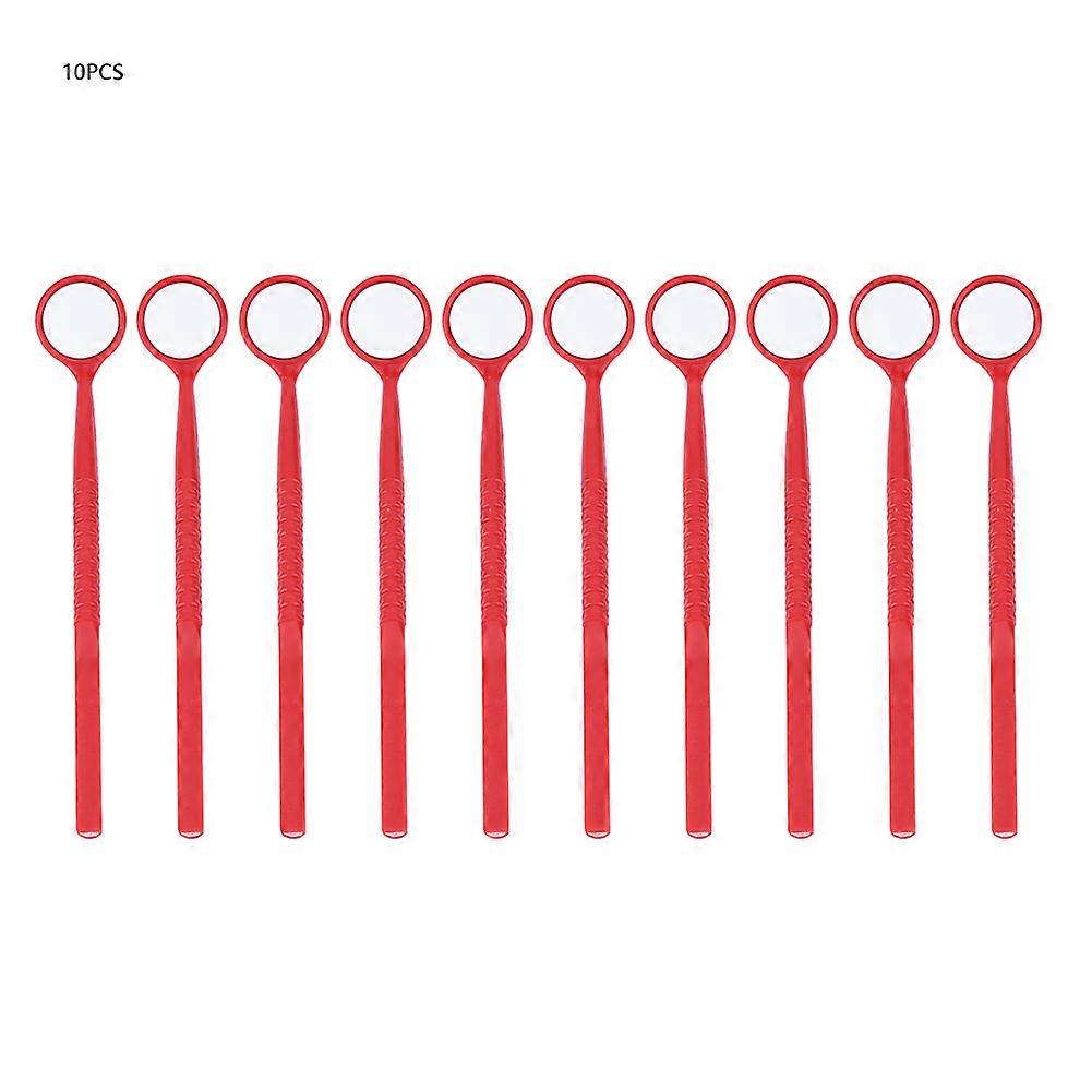 10pcs Oral Examination Glass Fiber Handle Dental Mouth Mirrors with Measurement(red)