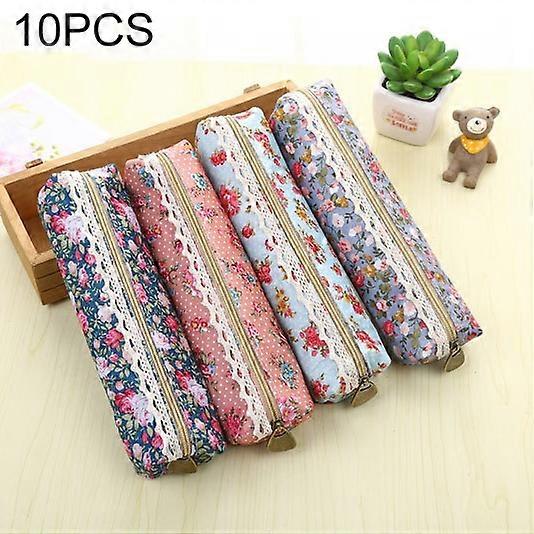 10 PCS Creative Pastoral Style Floral Roll Pen Pencil Case Bag for School Stationery Office Supply, Random Color Delivery