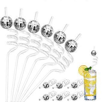 100%New,12 Pcs Disco Straw Party Decorations Mirror Disco Ball Straws Disco Ball Stirrers