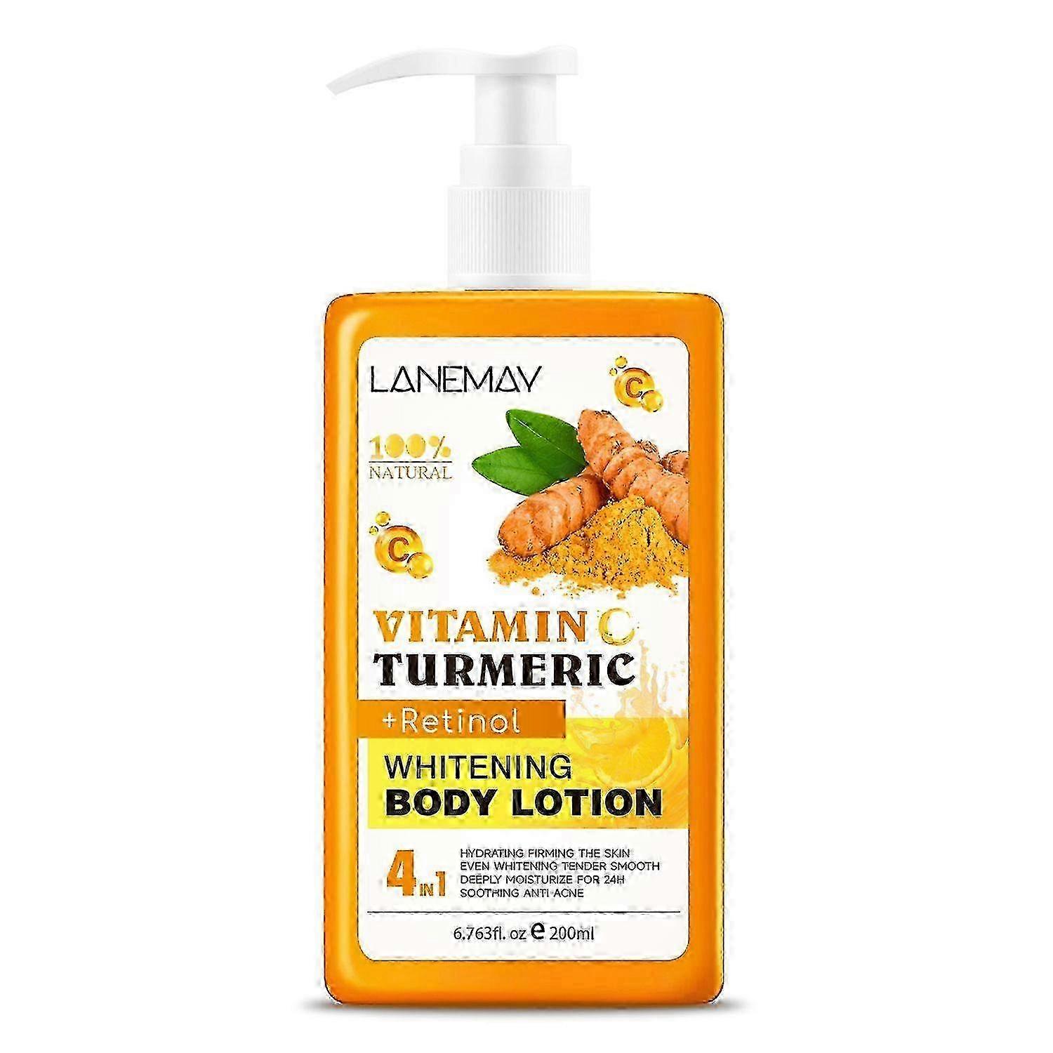 100% Natural Vitamin C Turmeric + Retinol Whitening Body Lotion with Nicotinamide, 4-in-1 Hydrating Firming Even Skin Tone Anti-Acne