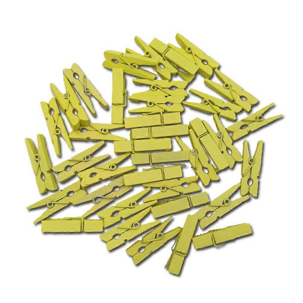 100 PCs 35MM Colored Wooden Clip Snacks Sealing Clips Photo Clips for Home Decoration Laundry (Yellow)