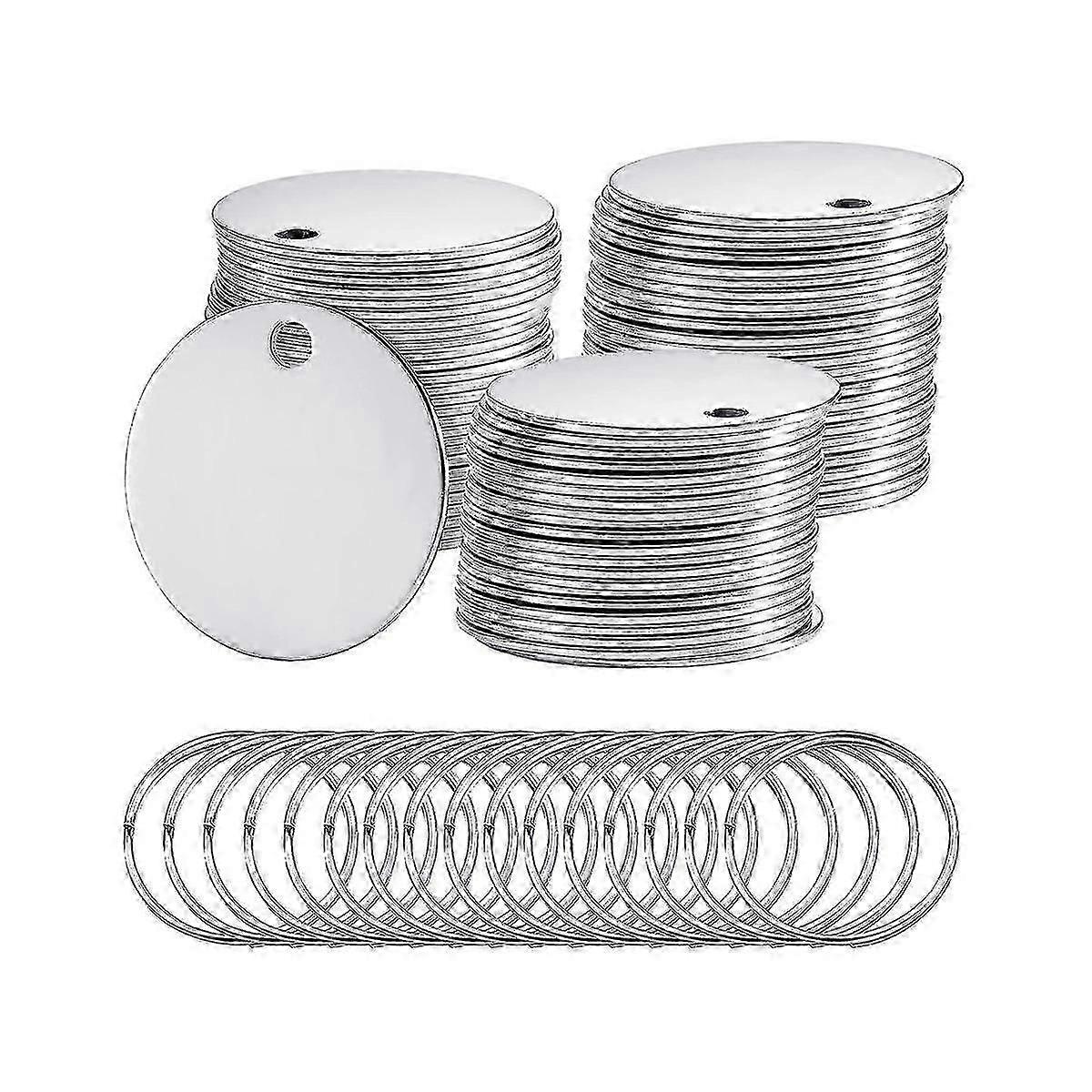 100 Pack Round Stamping Blanks Stainless Steel Blank Tags with Hole Silver Metal Blank Dog Tags Pol