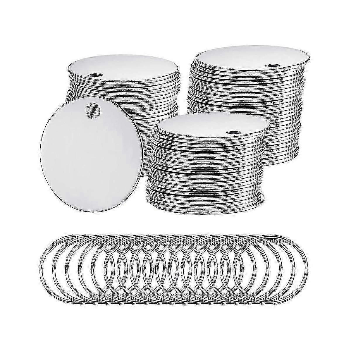 100 Pack Round Stamping Blanks Stainless Steel Blank Tags with Hole Silver Metal Blank Dog Tags Pol