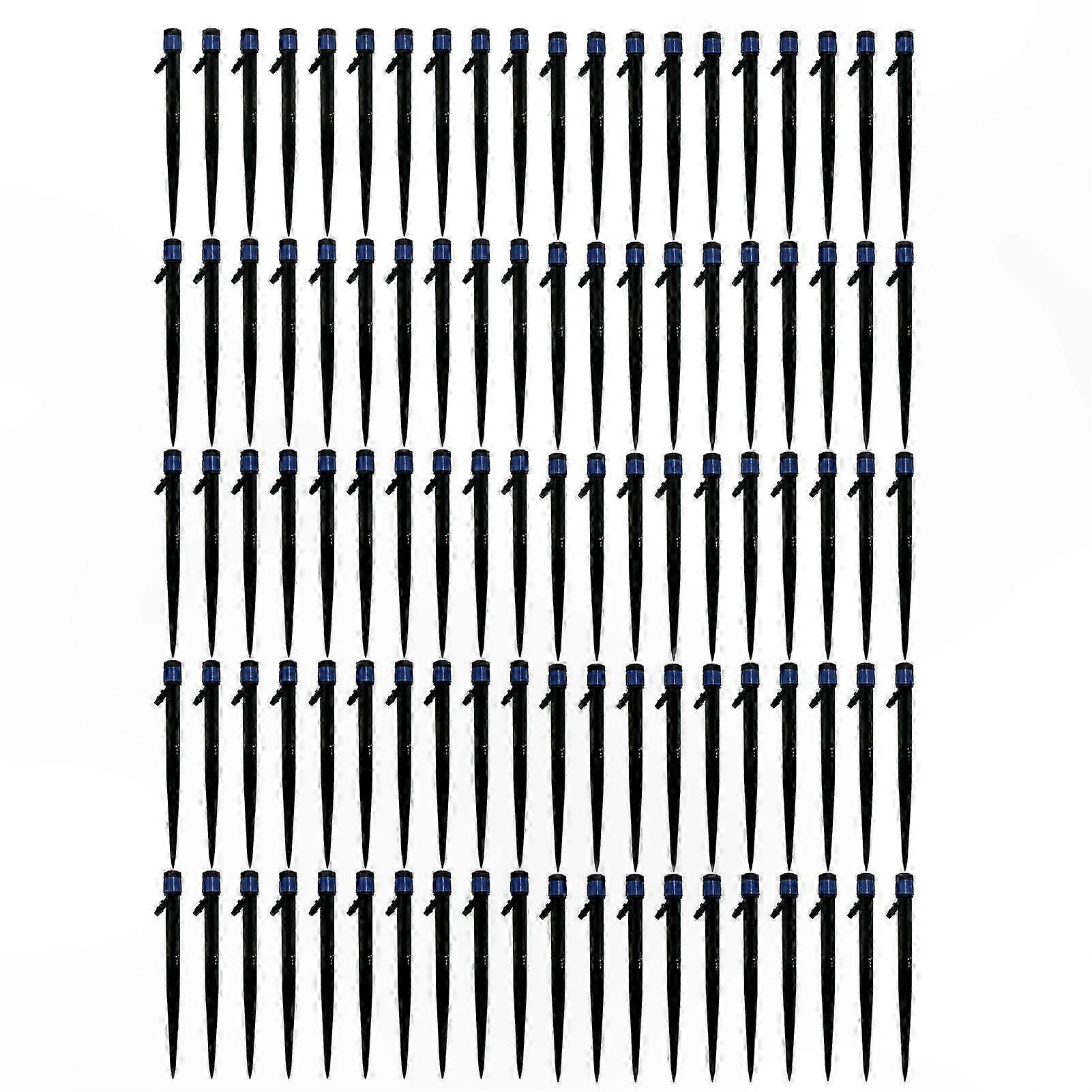 100 Pack Adjustable Drip Emitters 360° Water Flow Sprayers for Garden Irrigation Systems 13cm Blue