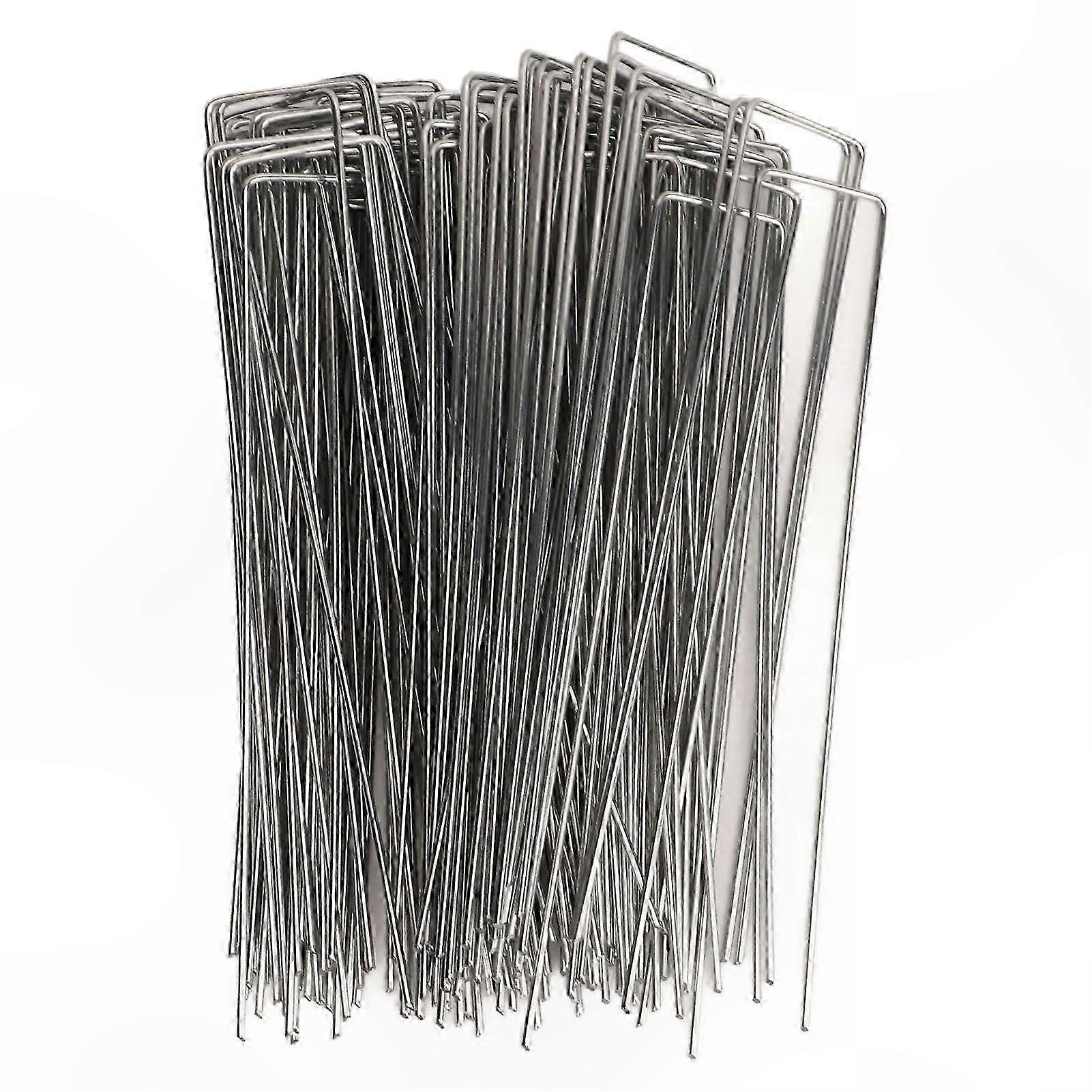100-Pack Galvanized Steel U-Shaped Landscape Pins for Garden Weed Barrier and Sod Installation, 2.5mm Thickness
