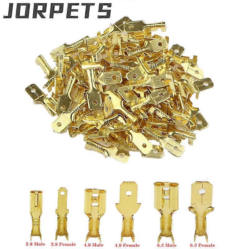 100Pcs/lot 2.8/4.8/6.3mm Female and male Crimp Terminal Connector Gold Brass/Silver Car Speaker Electric Wire Connectors 50 S