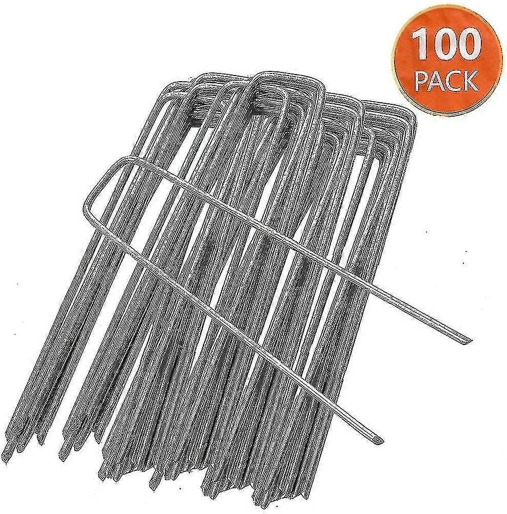 100 Pieces Gardening Tools U Shape Lawn Spikes, Non-Slip Artificial Turf