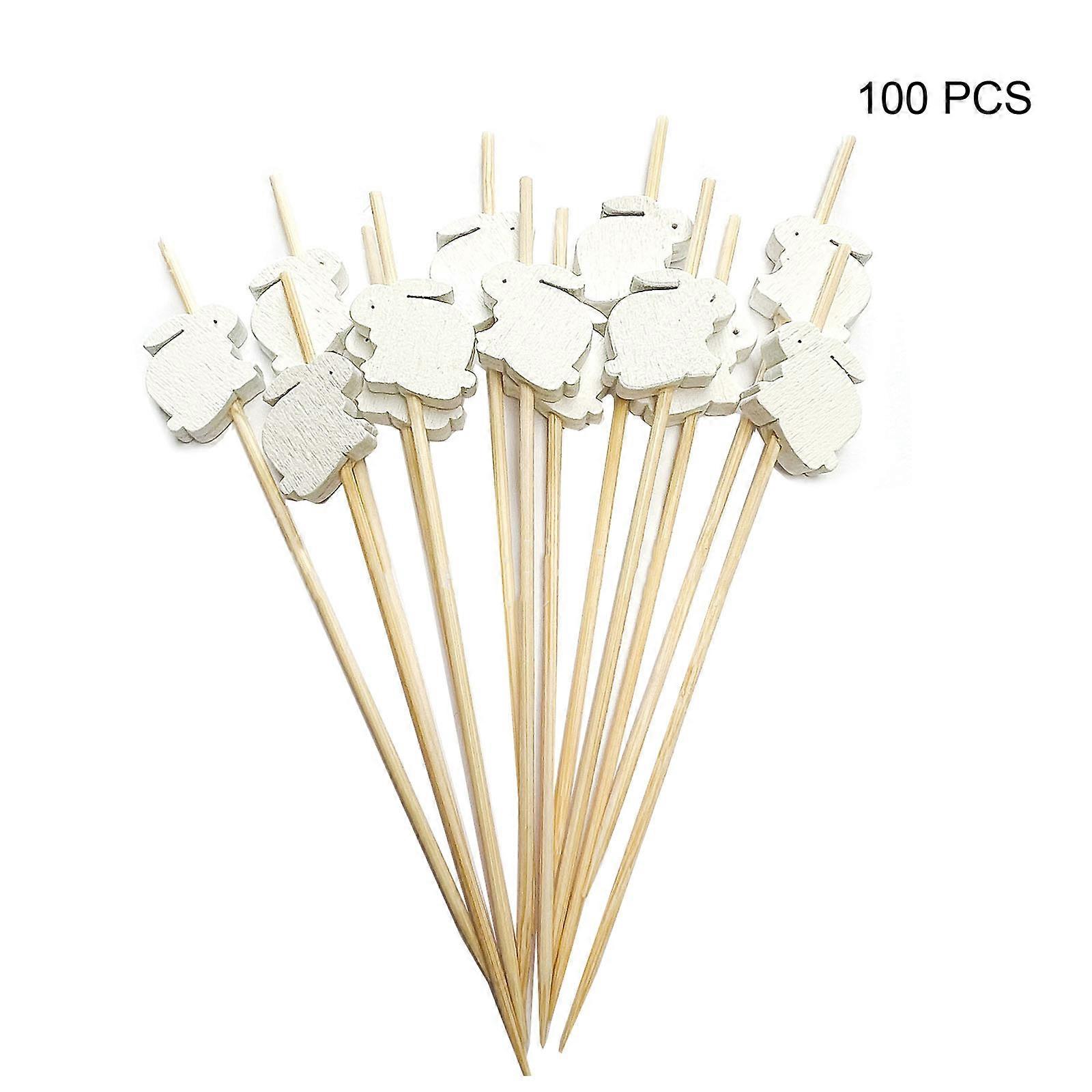 100Pcs Rabbit Disposable Bamboos Skewers Easter Egg Bunny Food Toothpick Fruit Forks Picks for Kids Snack Sticks Buffet